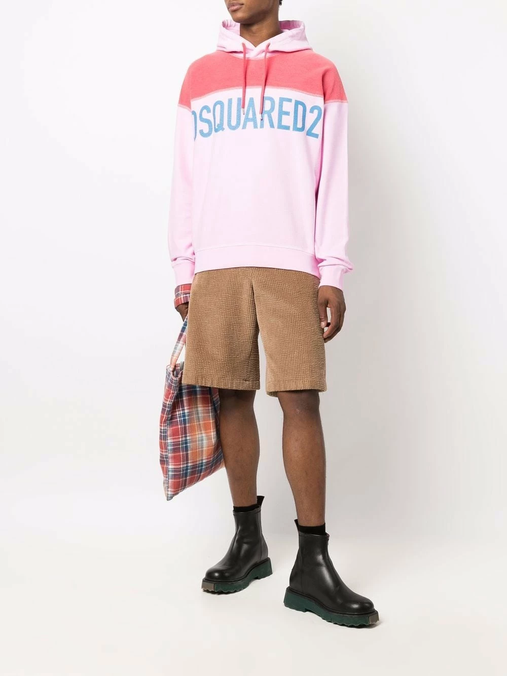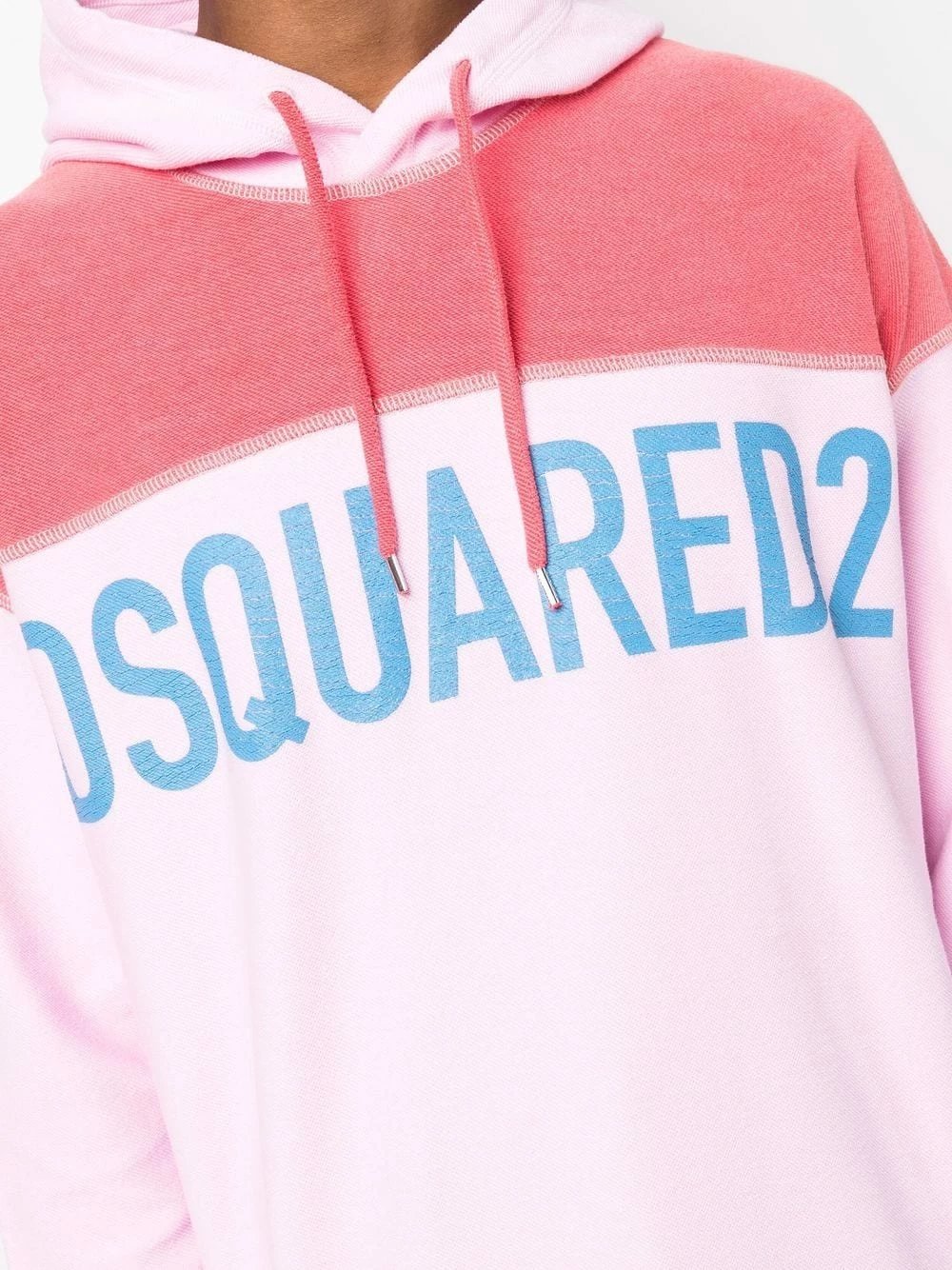 Logo imprimé à la poitrine, capuche à lien de resserrage, manches longues, ourlet droit. Couleur : rose. Matière : coton.