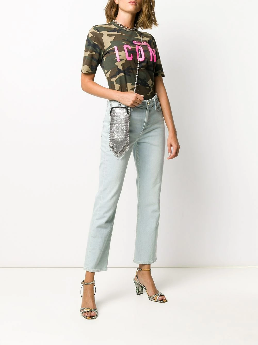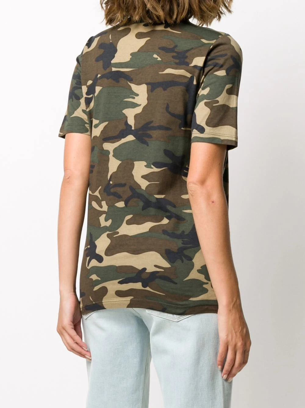 Imprimé camouflage, logo imprimé sur le devant, encolure ras du cou, manches courtes, coupe ajustée. Matière : coton.