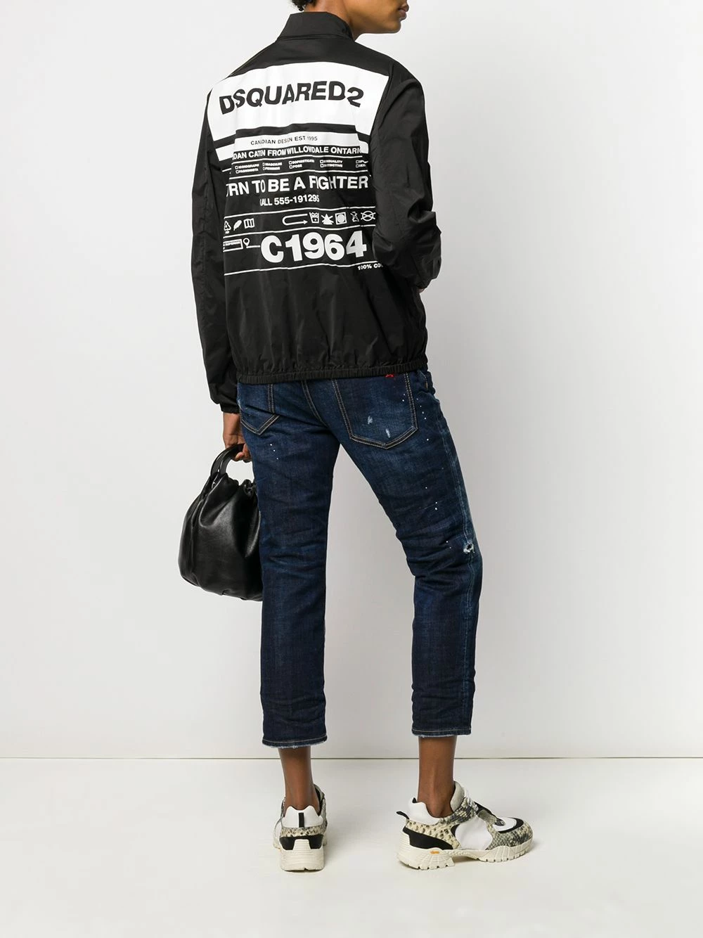 Veste imprimée Born to be a fighter Dsquared2 avec structure légère, logo imprimé à l’arrière, col classique, fermeture zippée devant, poches devant passepoilées, manches longues, poignets élastiqués et ourlet élastiqué. Couleur : noir.
