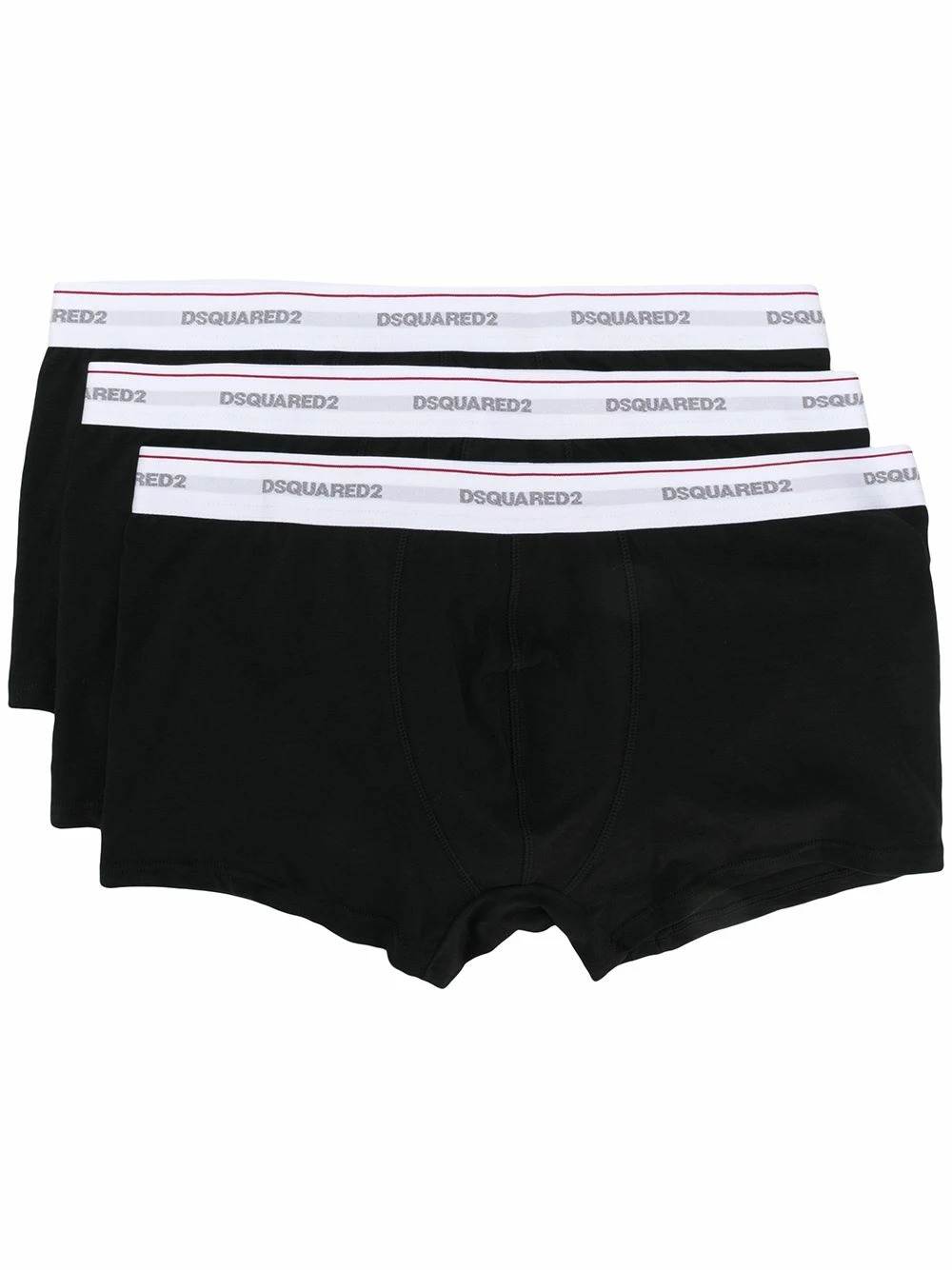 Lot de trois boxers en coton mélangé à logo Dsquared2 avec longueur courte et coupe stretch. Les sous-vêtements et la lingerie doivent être essayés par dessus vos propres vêtements.