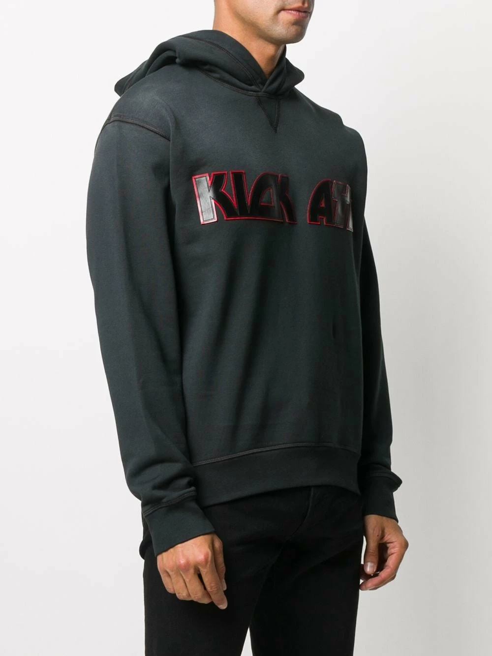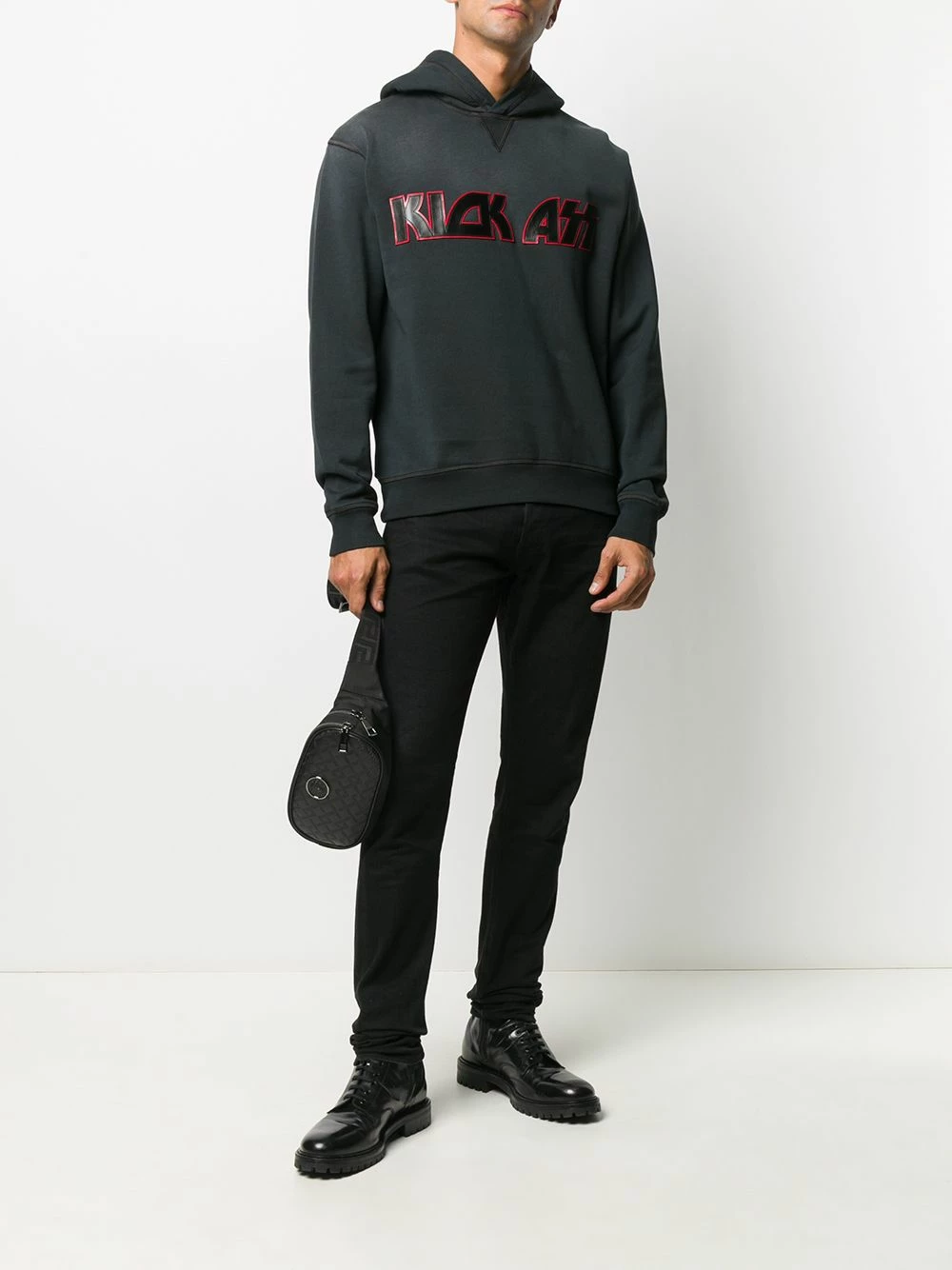 Slogan imprimé sur l’avant, capuche classique, manches longues. Couleur : noir. Matière : coton.