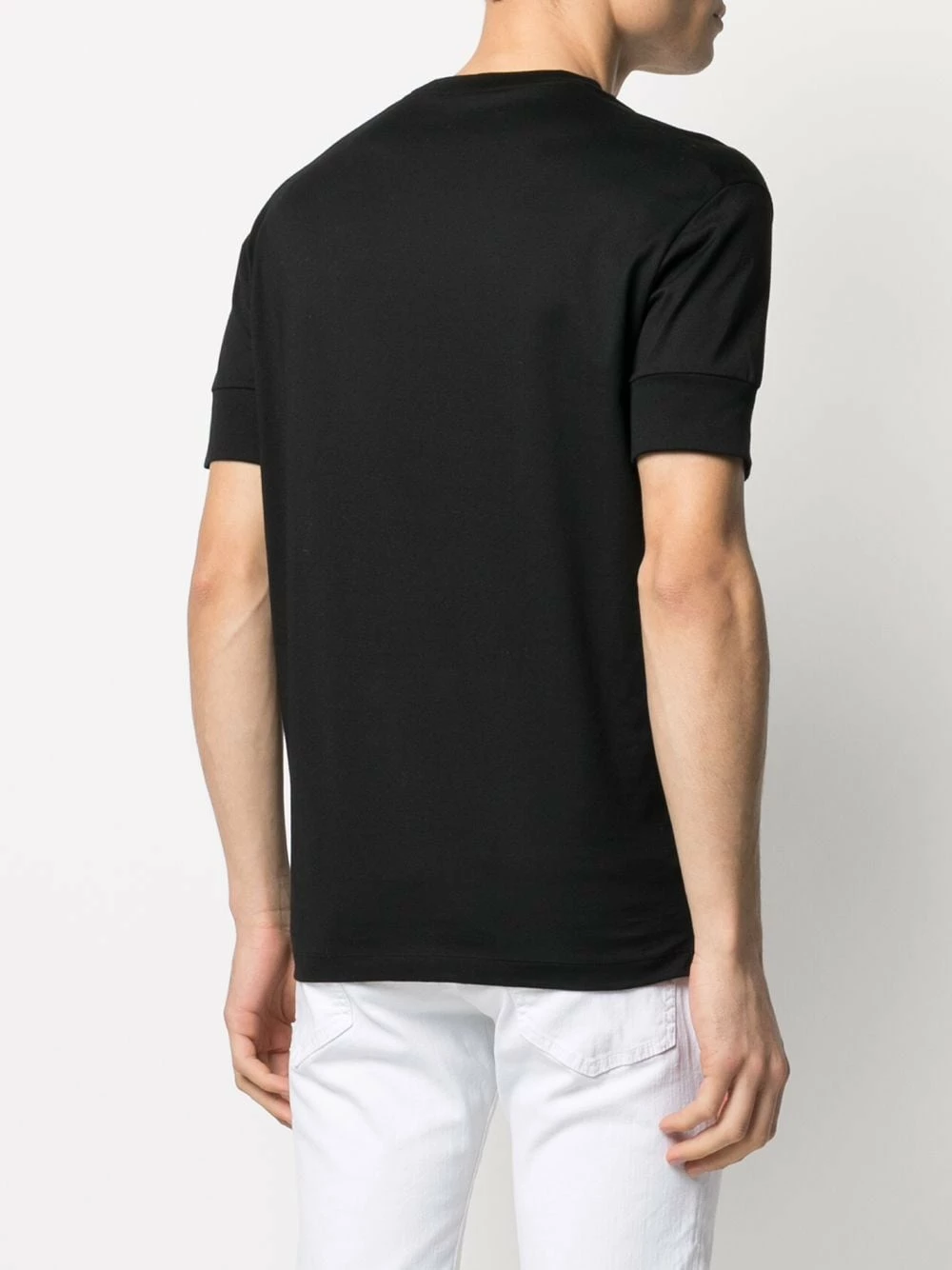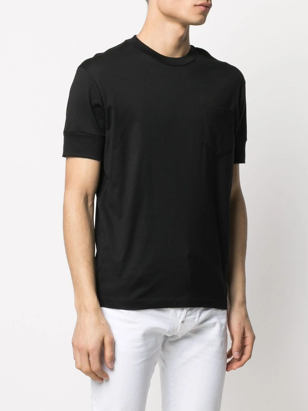 Tricot point jersey, logo imprimé à la poitrine, encolure ras du cou, poche poitrine plaquée, manches courtes. Couleur : Noir. Matière : coton.