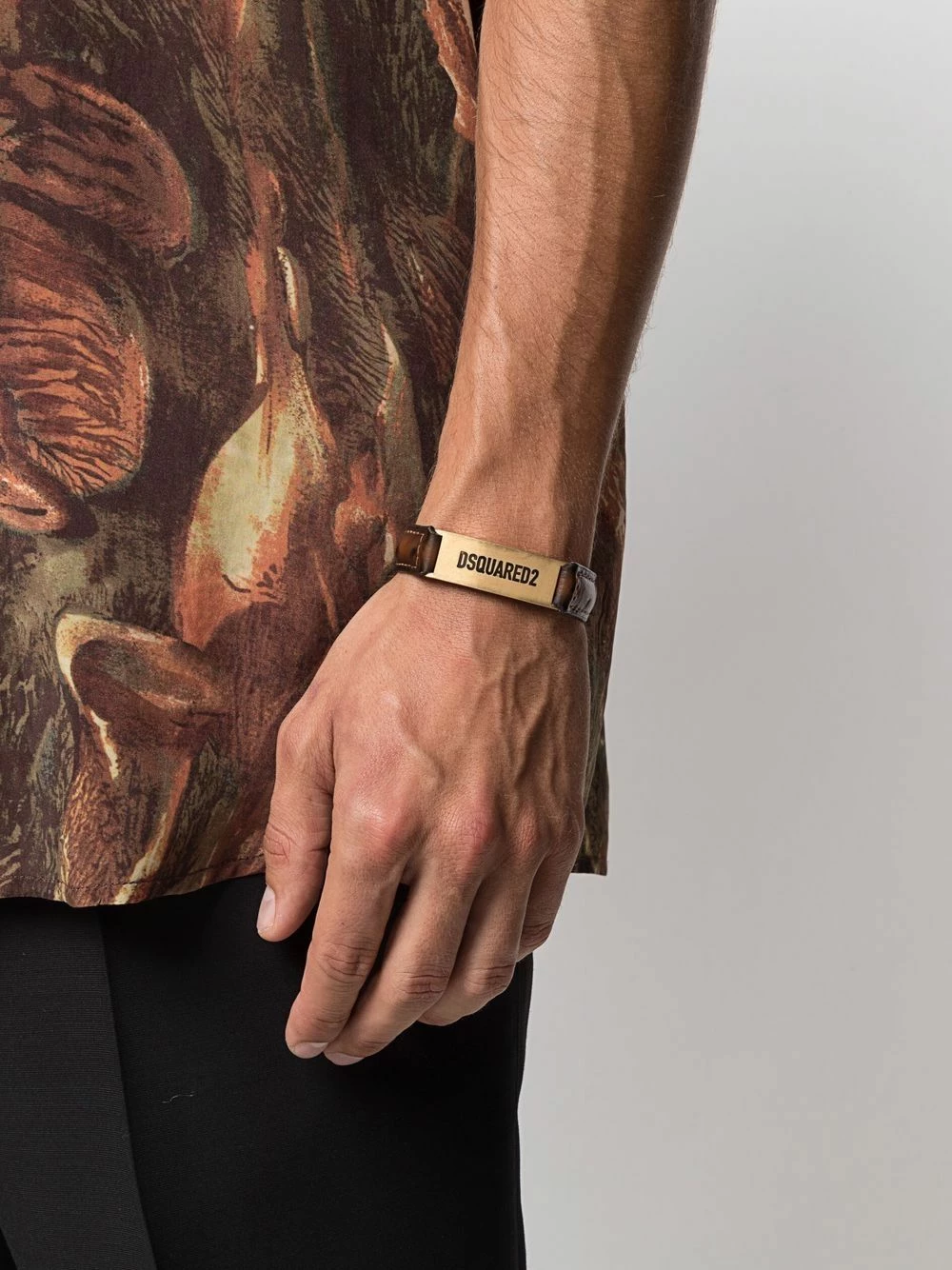 Plaque logo dorée, fermeture à boucle dorée, taille ajustable. Matière : cuir de veau.