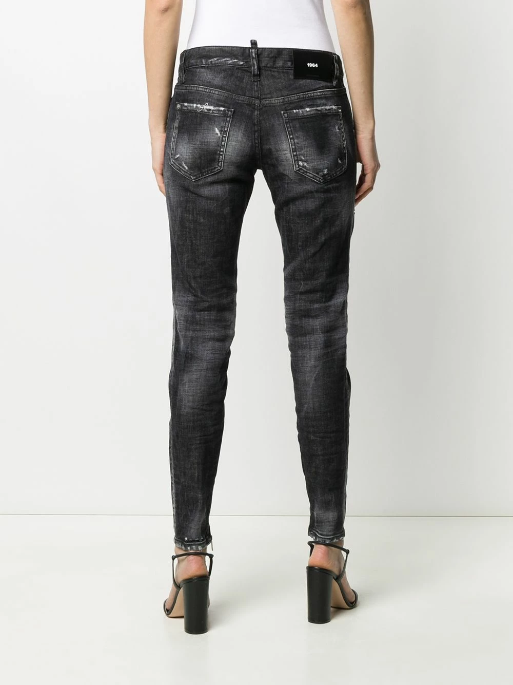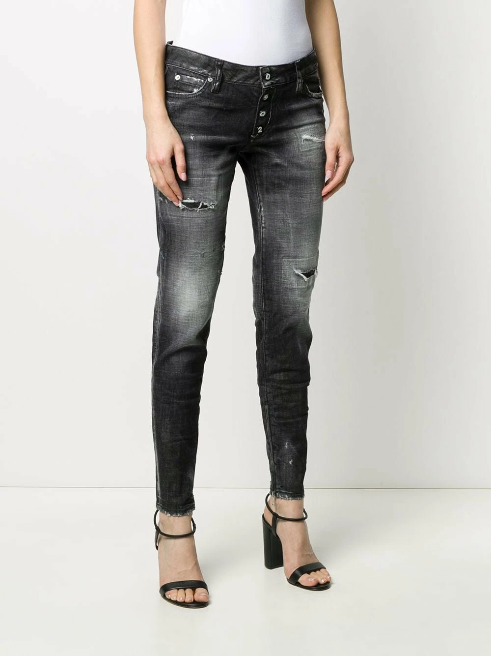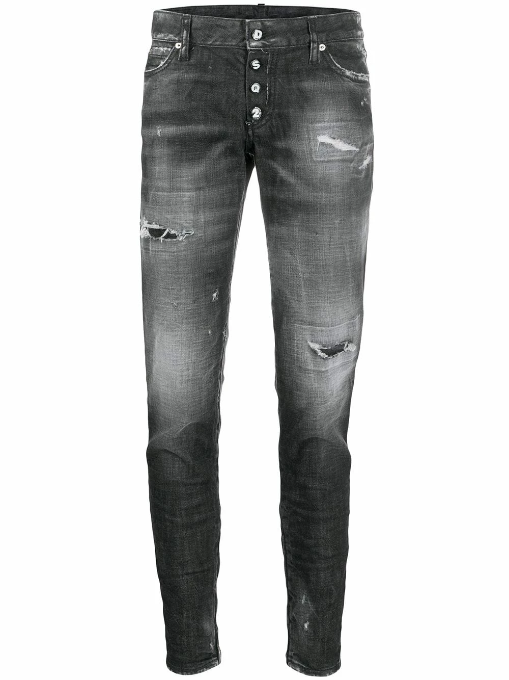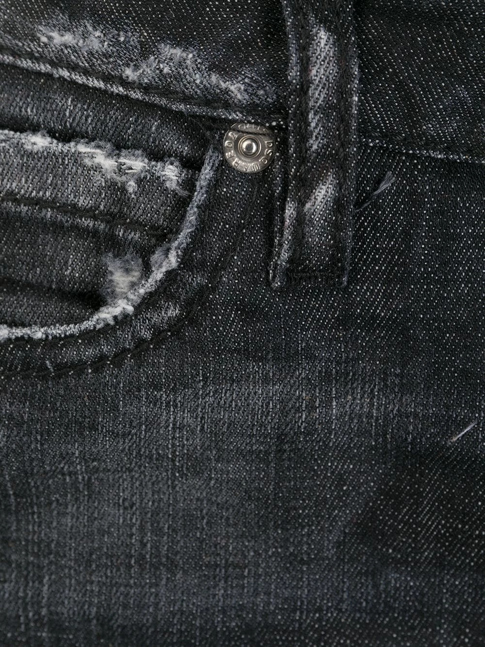 Jean skinny à effet usé en spandex/élasthanne Dsquared2 avec boutonnière, passants de ceinture, poches latérales zippées, coupe skinny, zips aux chevilles, poche arrière plaquée et effet délavé usé.