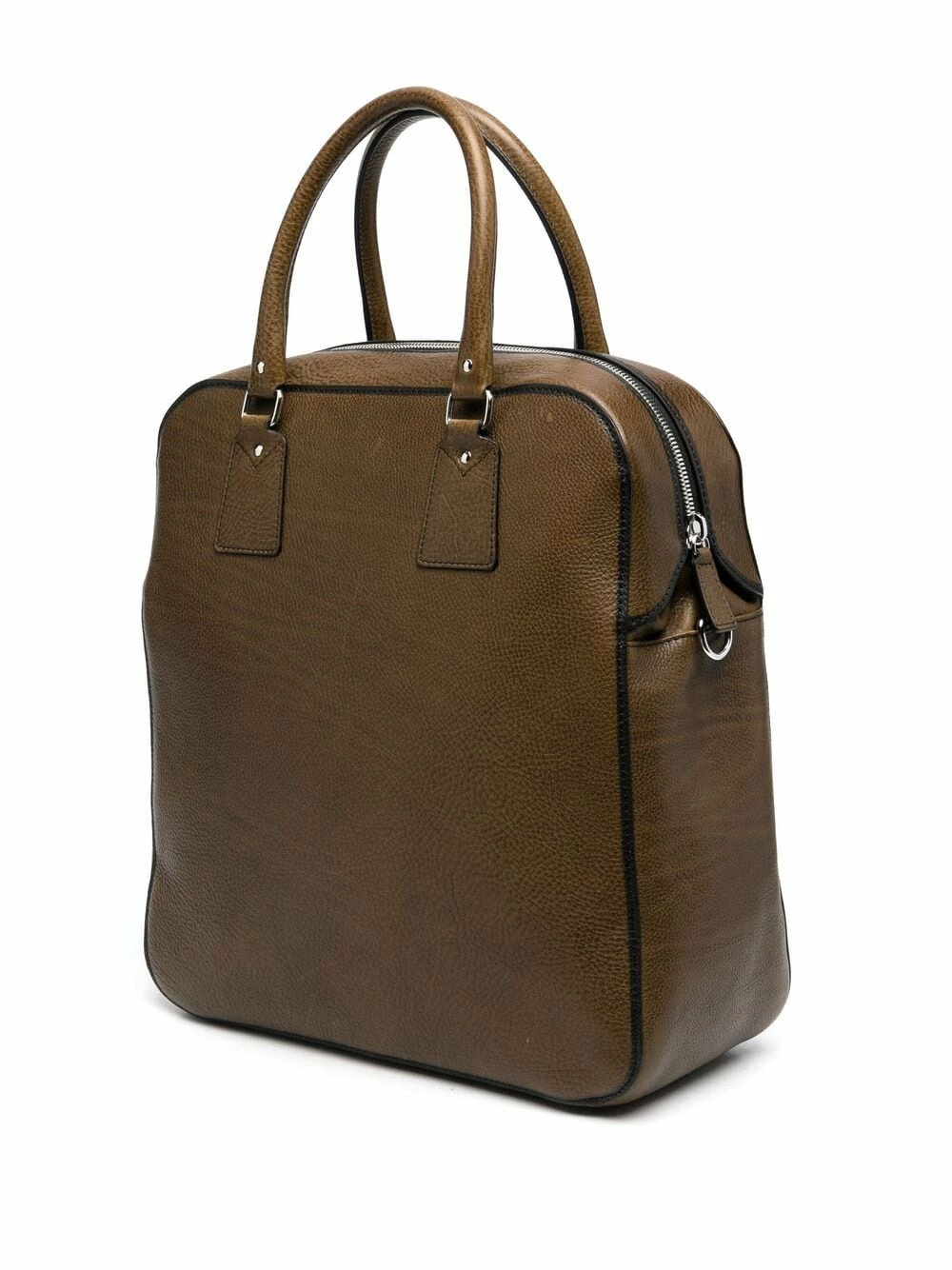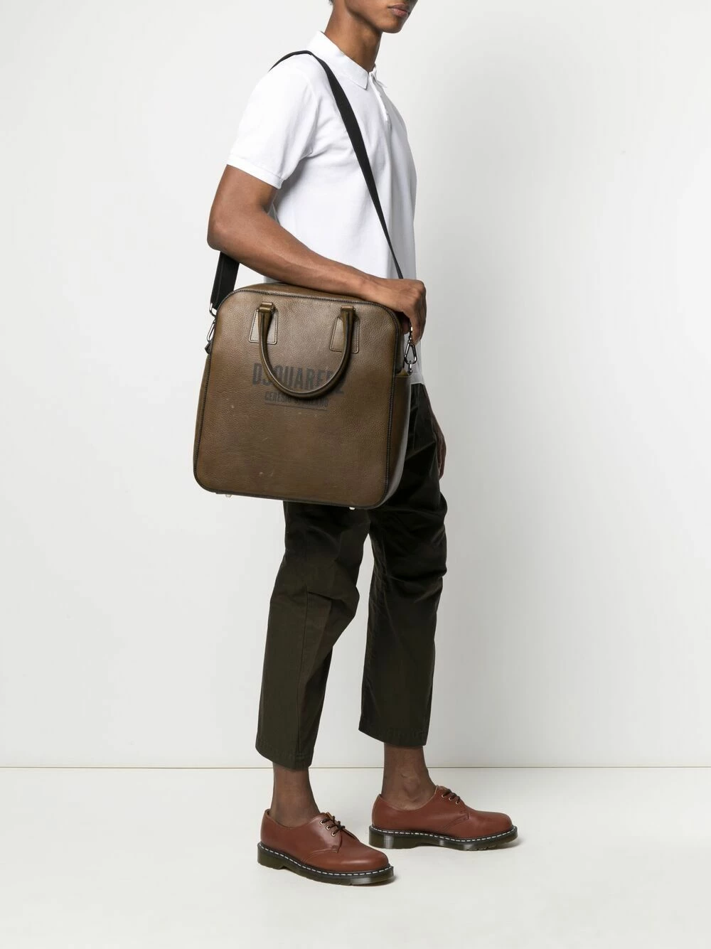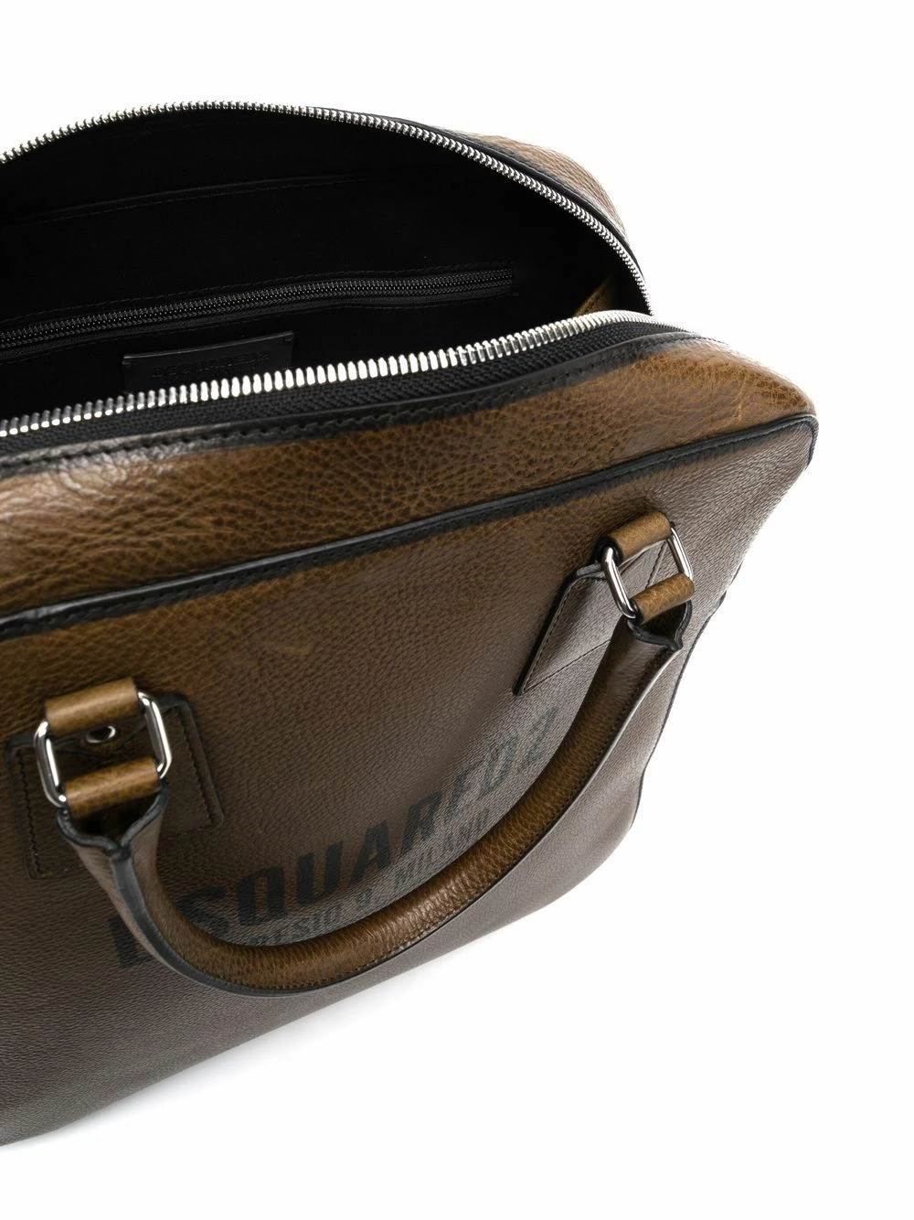 Logo imprimé sur le devant, anses arrondies, bride porté épaule détachable et ajustable, fermeture zippée sur le dessus, poche intérieure zippée, patch logo intérieur. Couleur : marron.