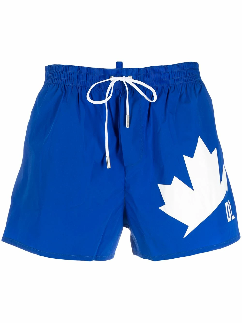 Taille haute, lien de resserrage à la taille, poches plaquées latérales, coupe courte. Couleur : bleu. Veillez à essayer les maillot de bain par-dessus vos propres sous-vêtements.