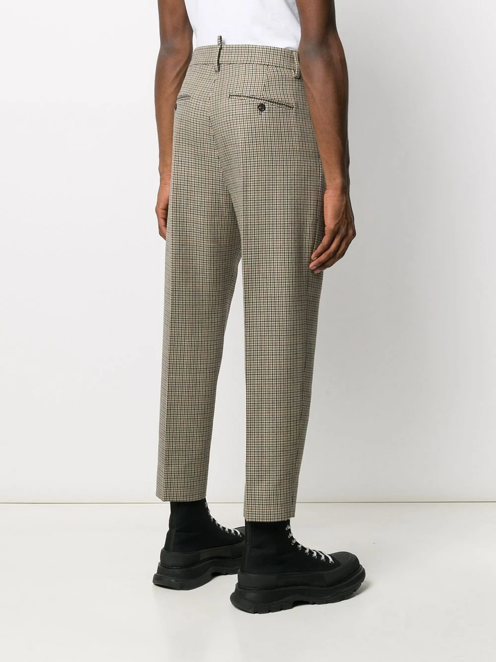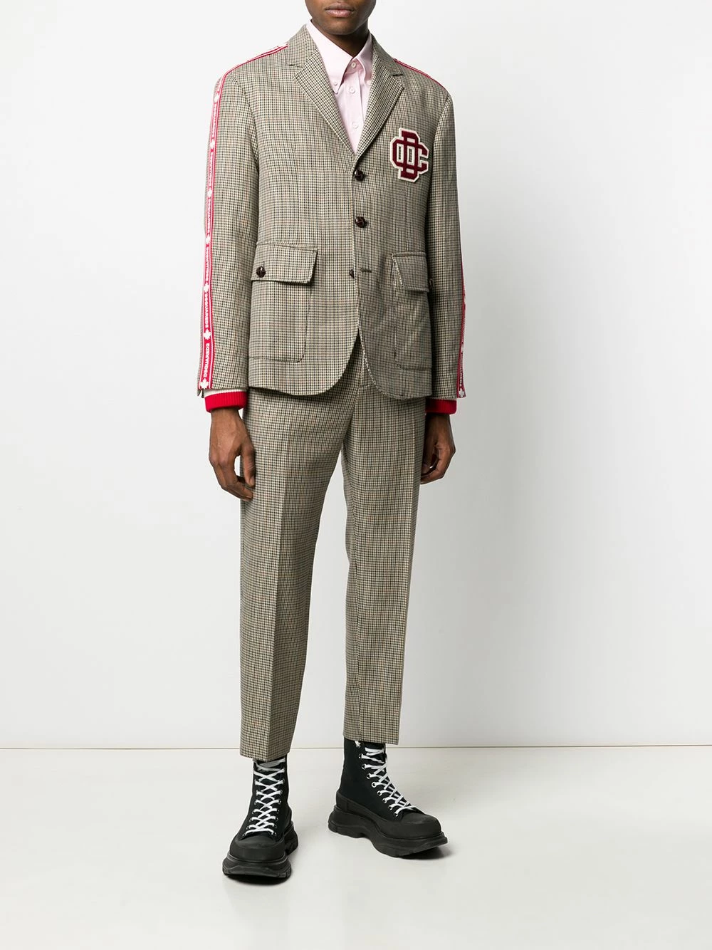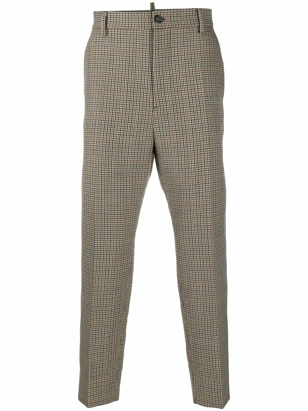Pantalon de costume à carreaux en laine vierge Dsquared2 avec carreaux, taille haute, boutonnière, passants de ceinture à la taille, coupe droite, poches latérales et poches arrière. Couleur : marron.