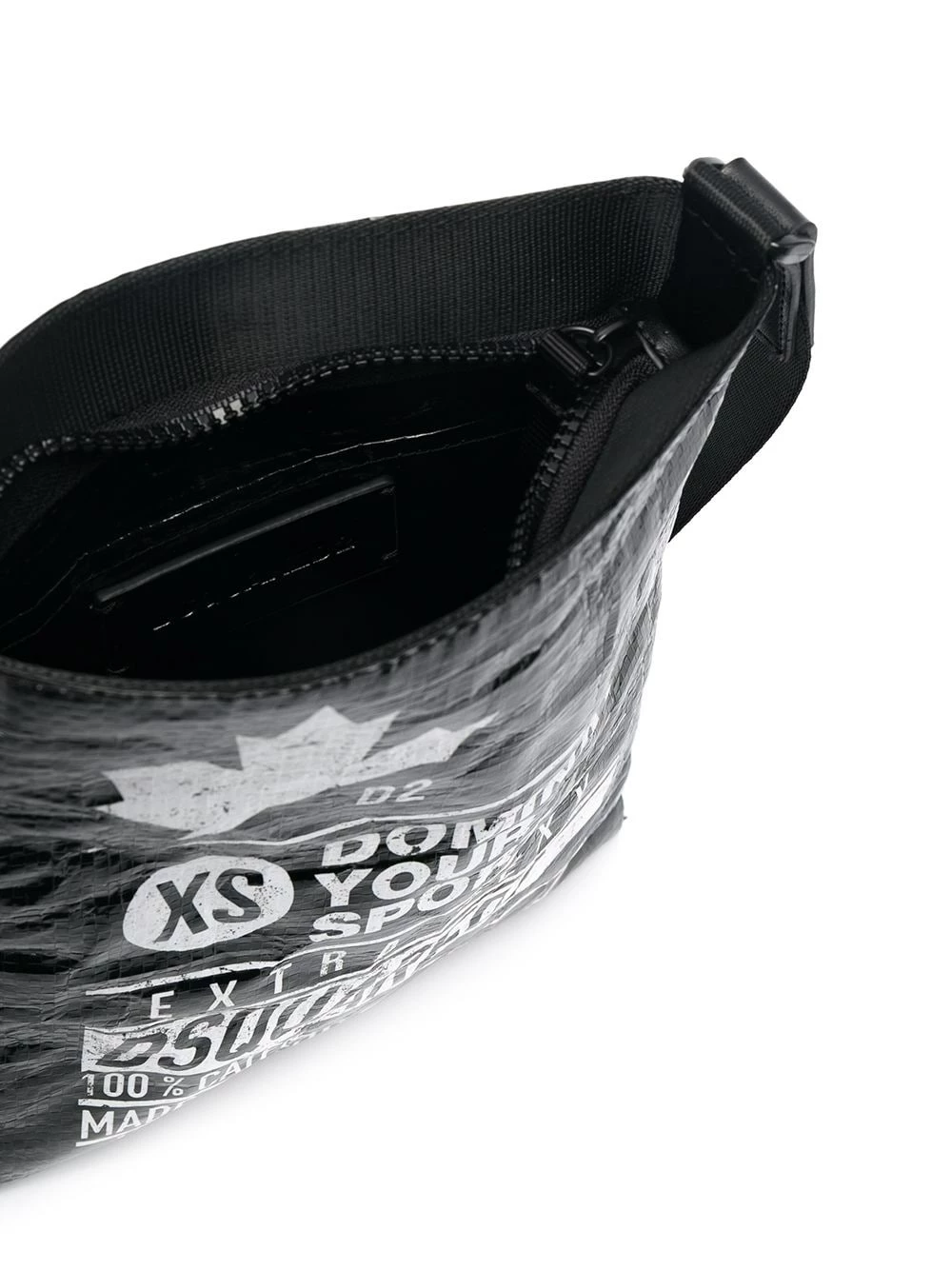 Logo imprimé et orné, fini verni, bride portée épaule ajustable, fermeture zippée sur le dessus, compartiment principal, poche intérieure plaquée.