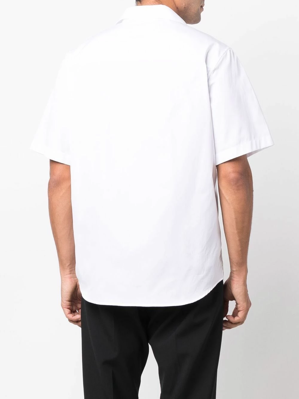 Logo imprimé sur le devant, revers pointus, boutonnière sur le devant, manches courtes, ourlet incurvé.