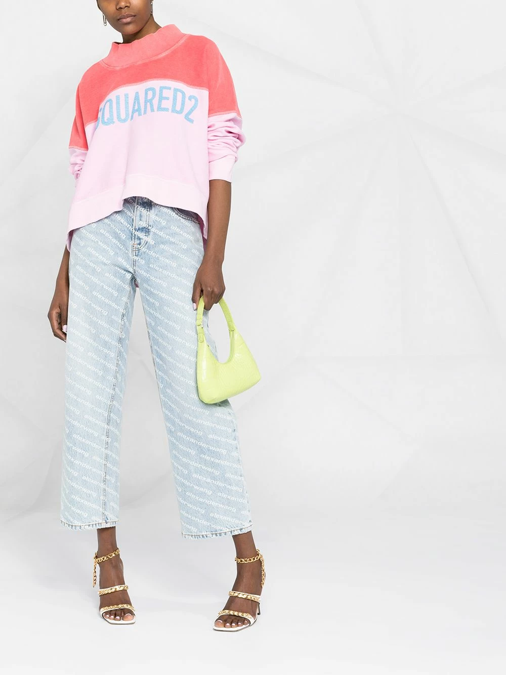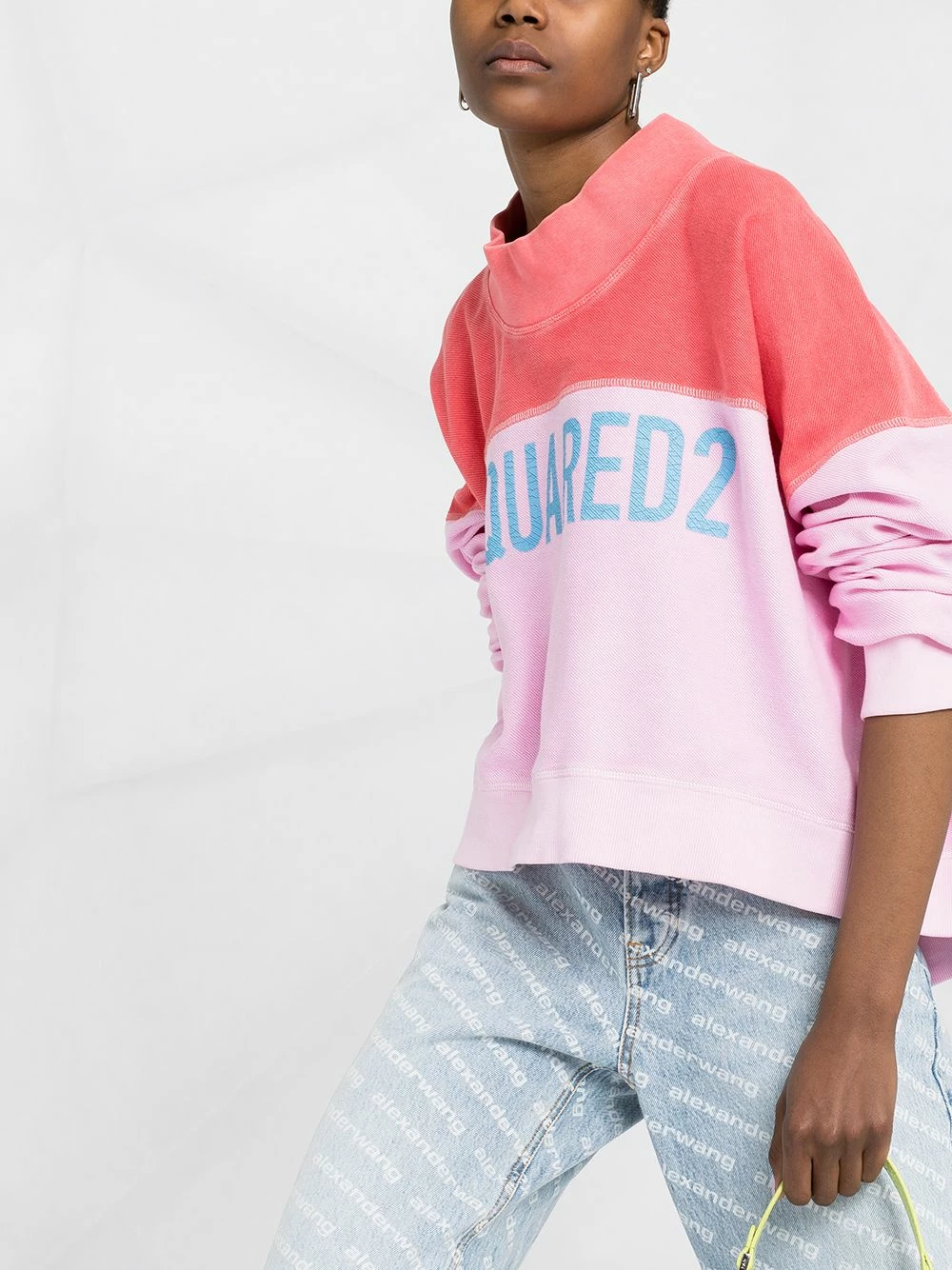 Modèle bicolore, logo imprimé sur le devant, col cheminée, manches longues, bordures nervurées. Matière : coton.