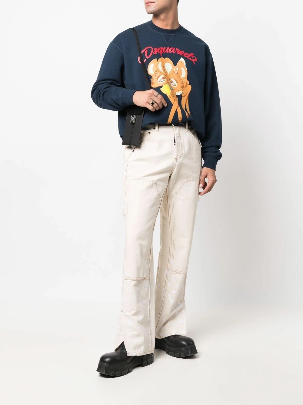 Imprimé graphique sur le devant, logo lettre, manches longues, encolure ras du cou. Couleur : bleu. Matière : coton.