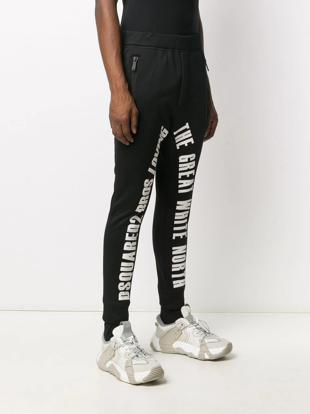 Imprimé graphique, coupe ajustée, ceinture élastique, deux poches latérales zippées. Matière : coton.