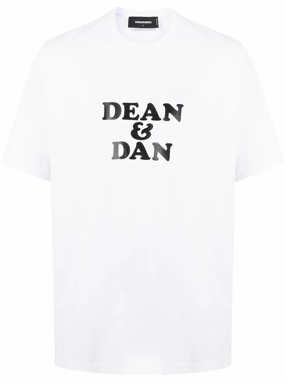 T-shirt à imprimé Dean & Dan en coton Dsquared2 avec imprimé devant, coupe droite, encolure ras du cou nervurée, manches courtes et ourlet droit.
