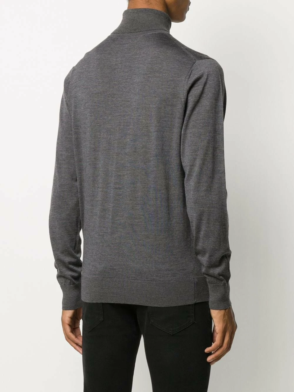 Col roulé, design tricoté, poche poitrine plaquée, logo brodée sur la poitrine, manches longues, ourlet droit, bord en maille côtelée. Couleur : gris.