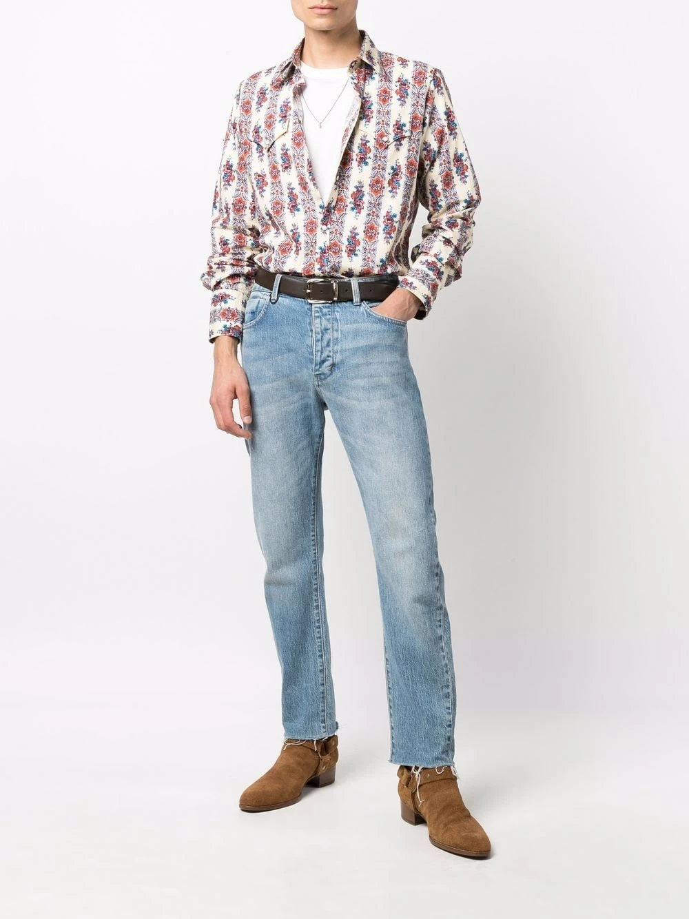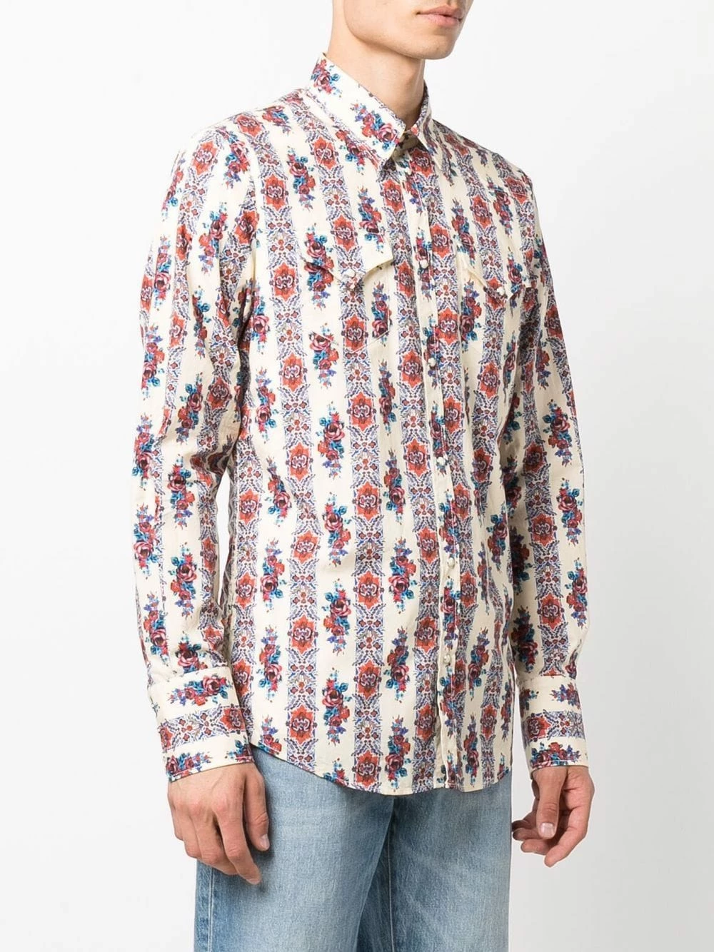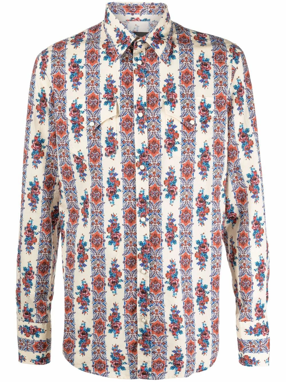 Imprimé graphique, col classique, manches longues, boutonnière sur le devant, deux poches poitrine à rabat. Couleur : multicolore. Matière : coton.