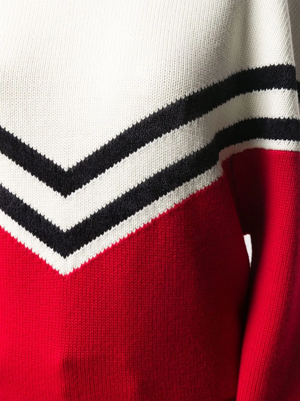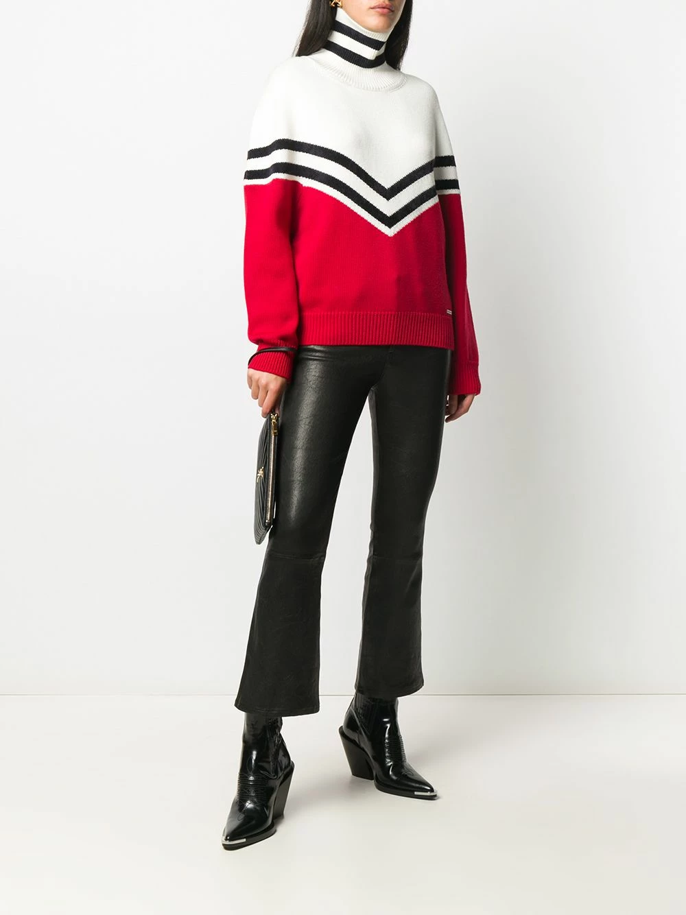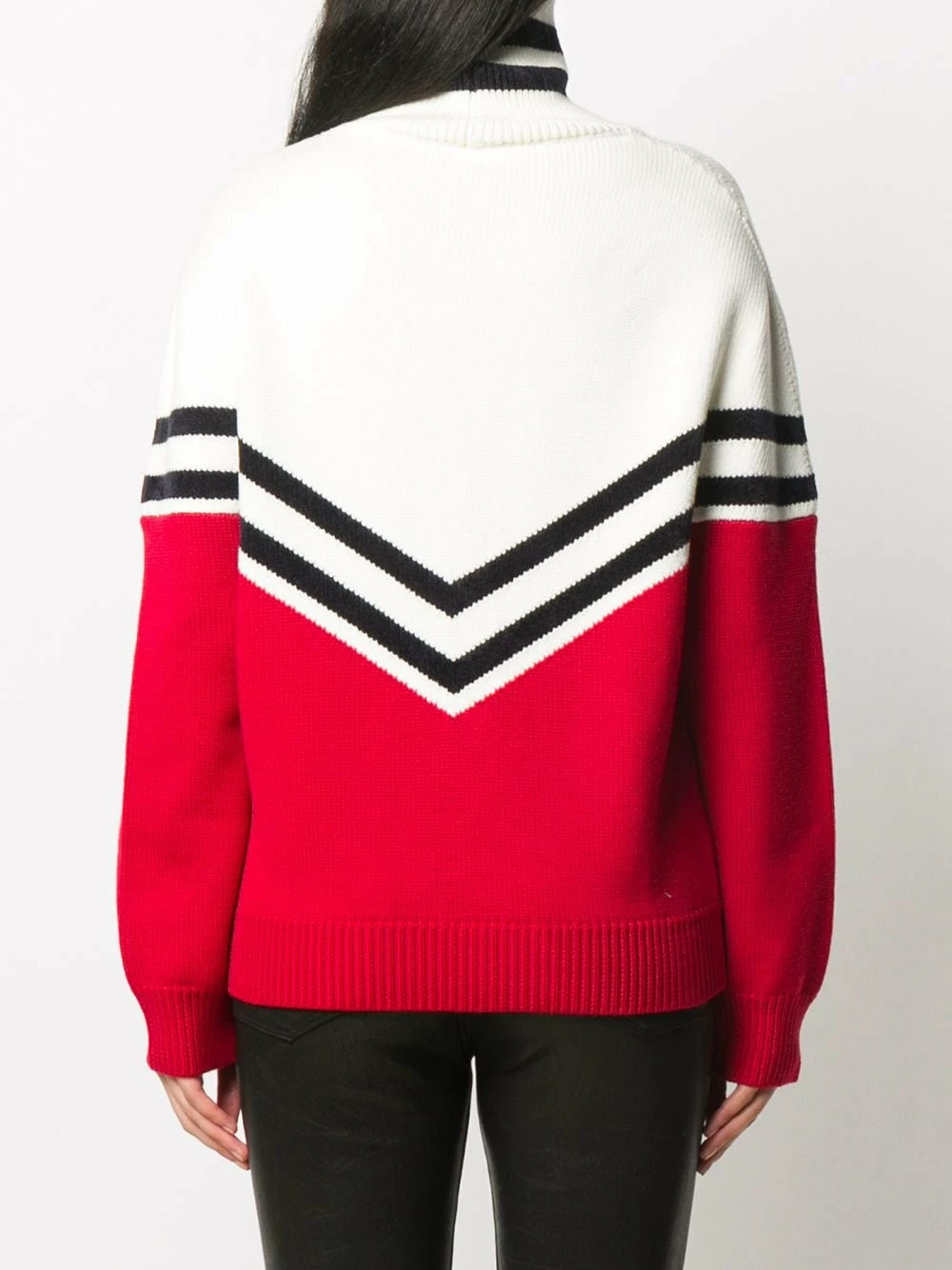 Design tricoté, bord en maille côtelée, design à empiècements colour block, ourlet droit, col roulé, manches longues.