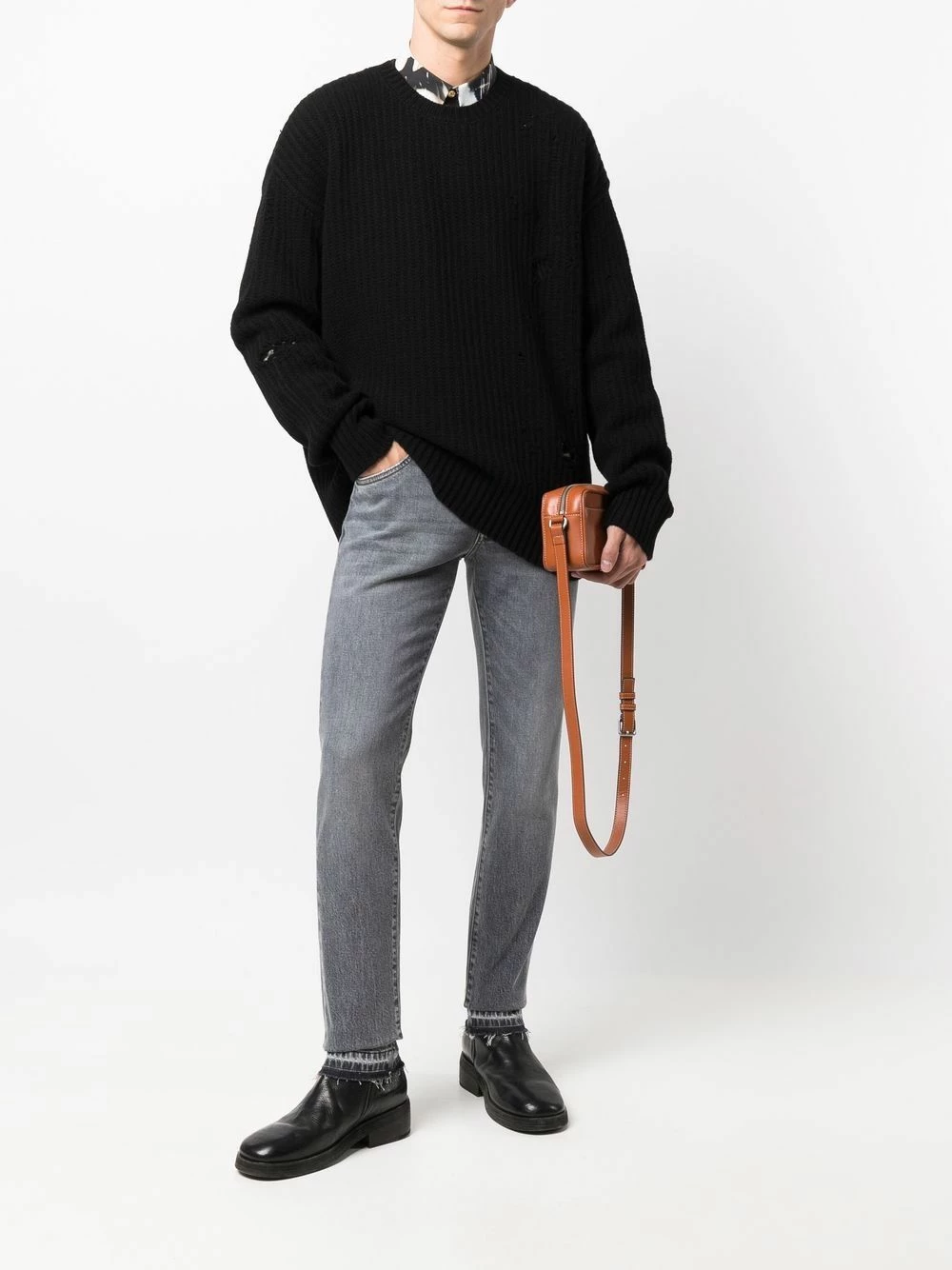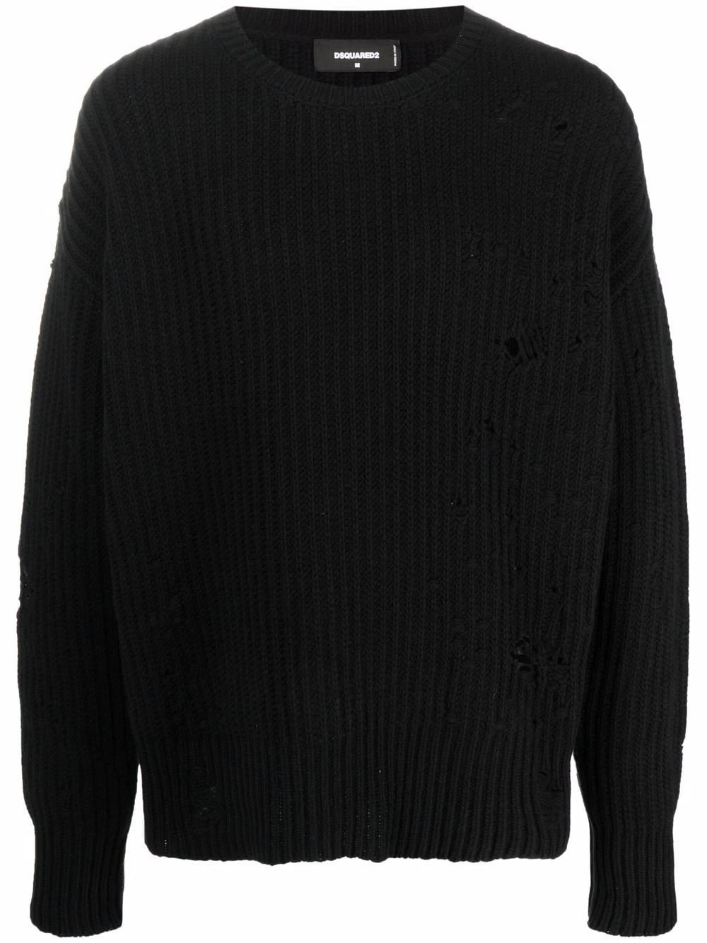 Maille nervurée, effet usé, manches longues, encolure ras du cou, ourlet droit.