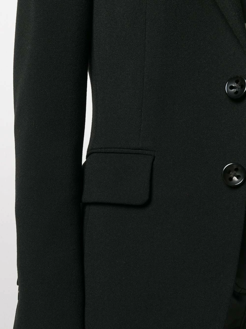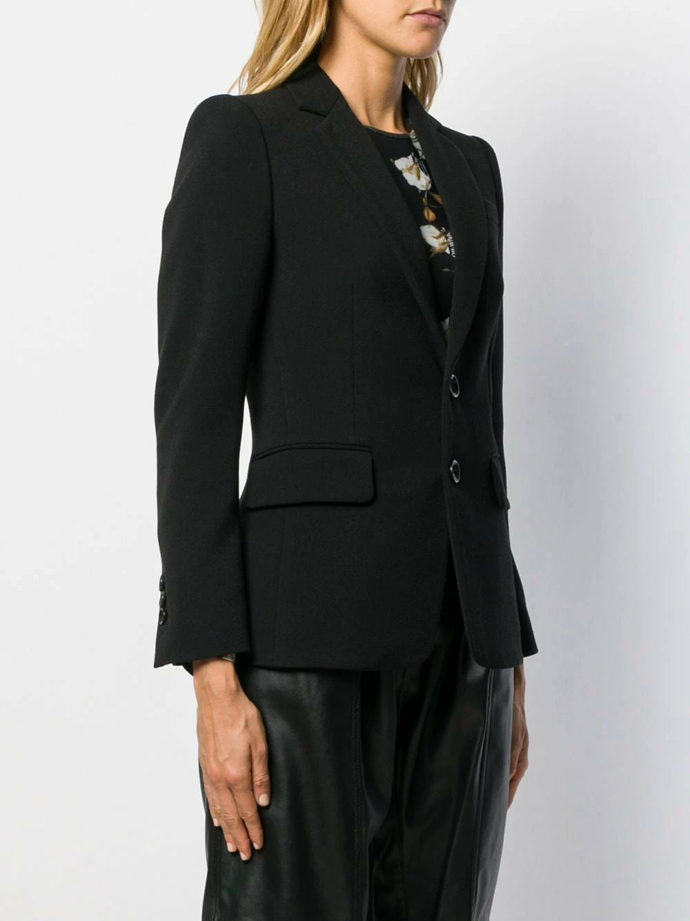 Blazer cintré classique Dsquared2 avec revers crantés, poche poitrine, manches longues, poignets boutonnés, fente arrière, boutonnière sur le devant et poches latérales à rabat. Couleur : noir.