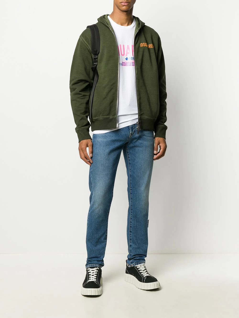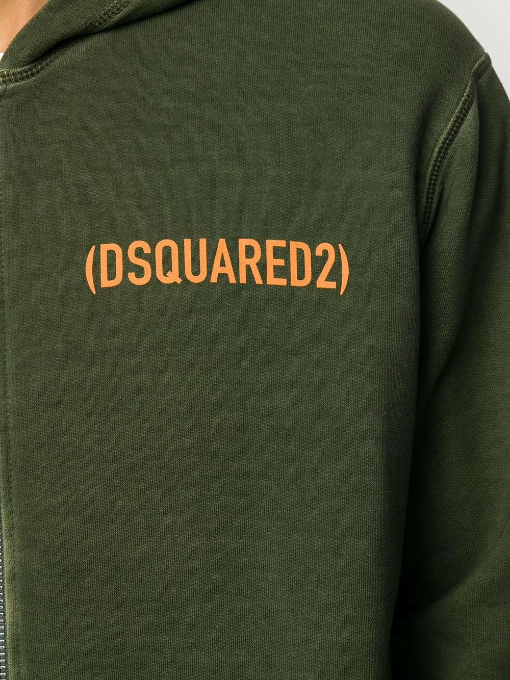 Logo imprimé à la poitrine, fermeture zippée devant, capuche classique, manches longues, deux poches latérales plaquées, ourlet droit, bord en maille côtelée. Matière : coton.
