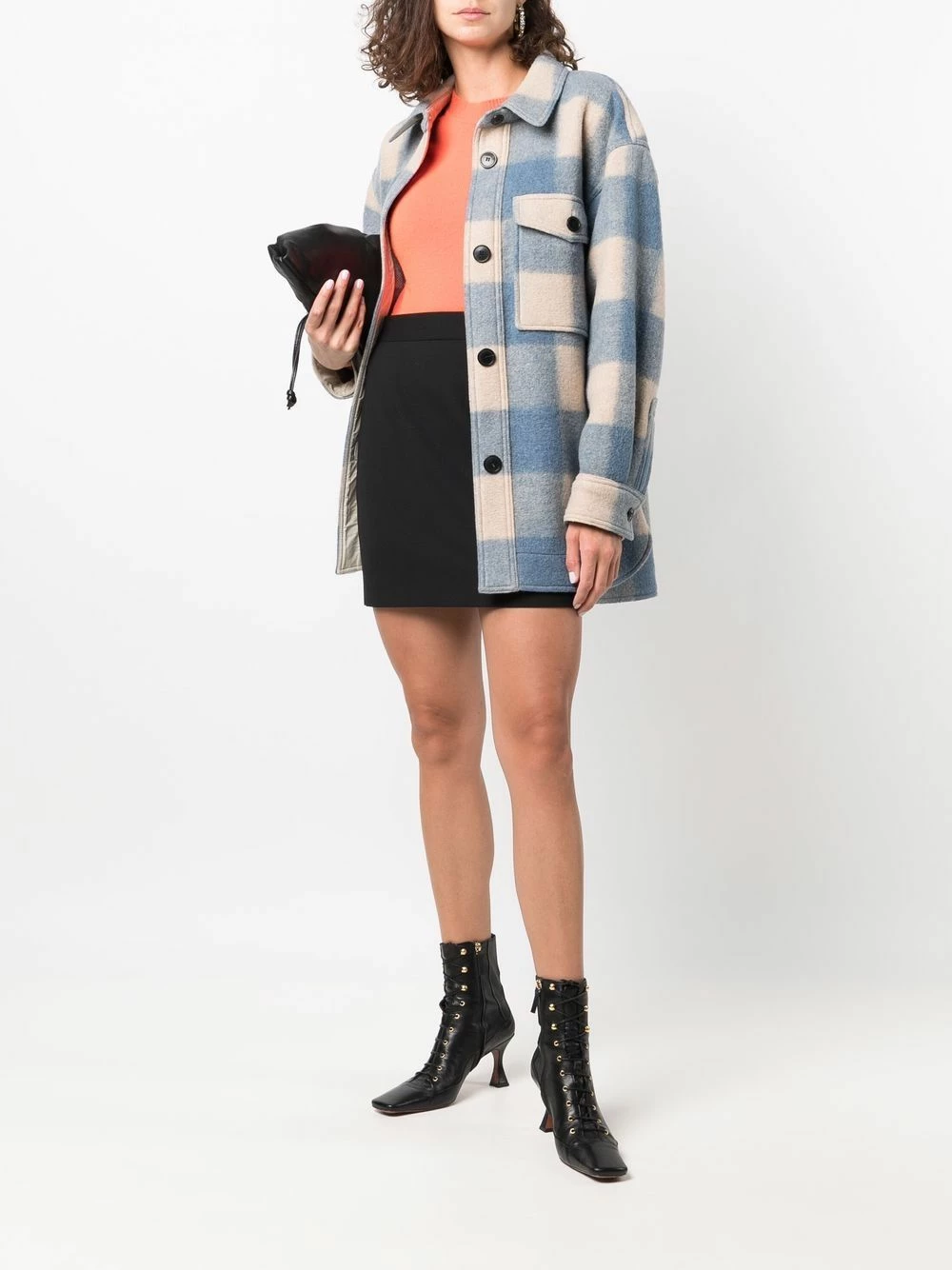 Construction stretch, taille haute. Couleur : noir. Matière : laine vierge.