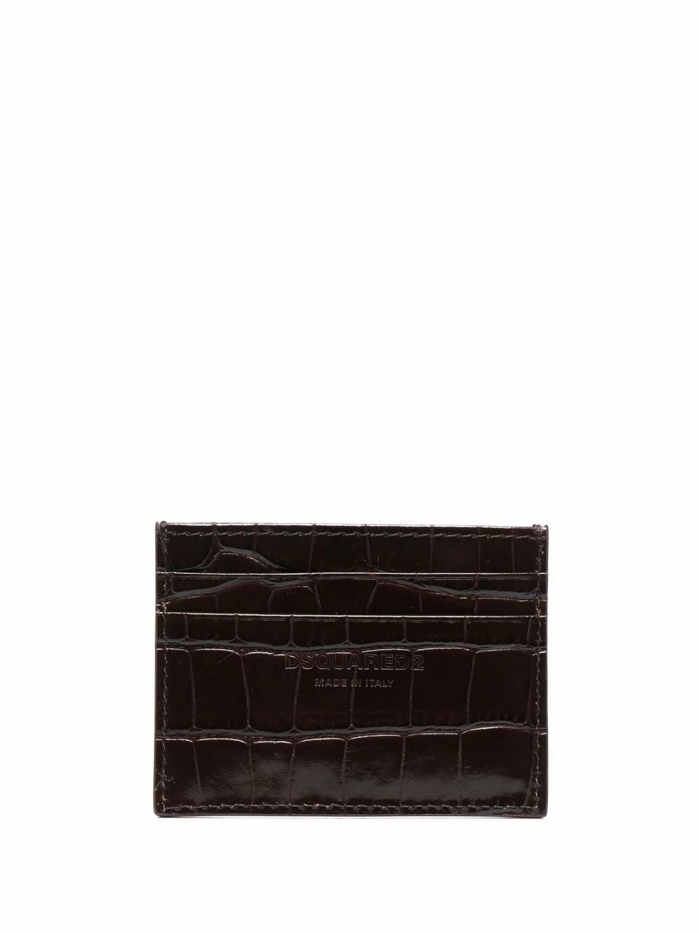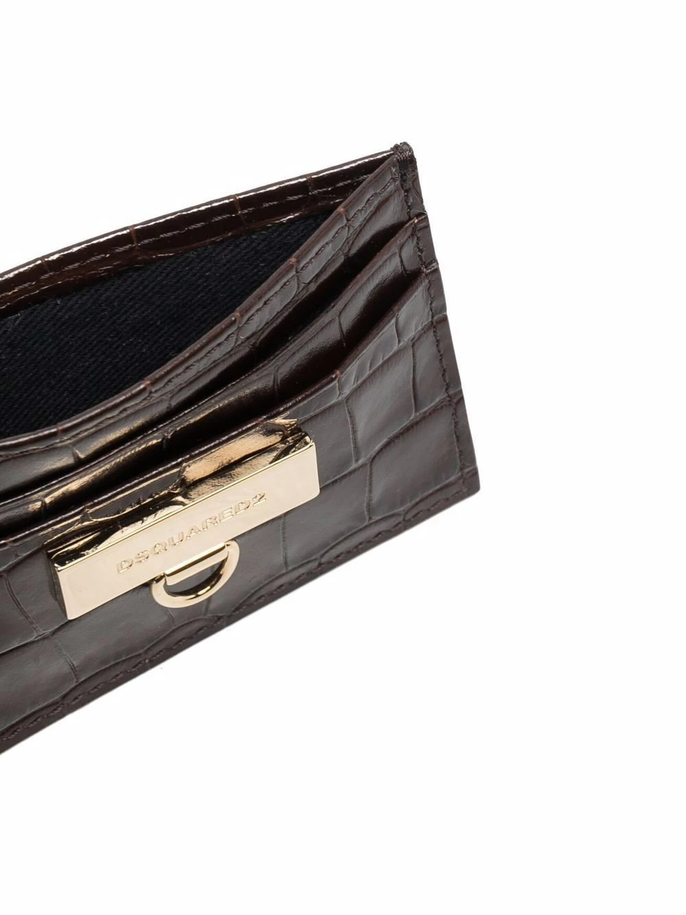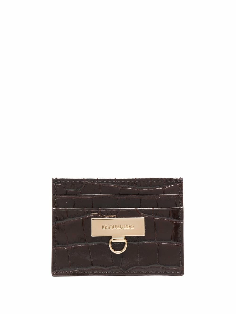 Effet peau de crocodile, plaque logo dorée, logo gravé, fentes pour carte. Couleur : marron. Matière : cuir de veau.