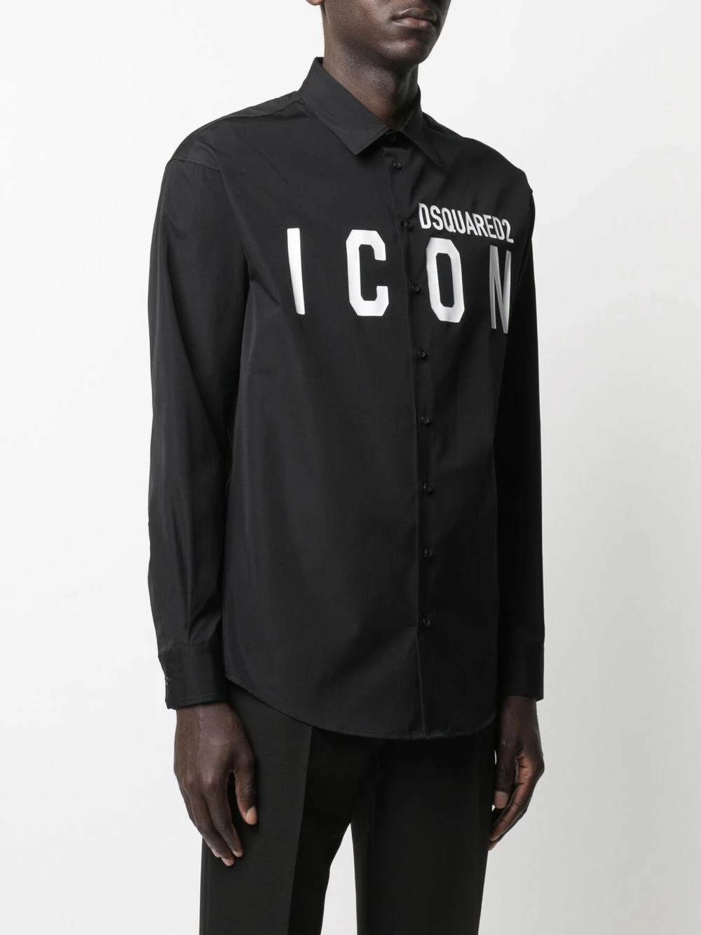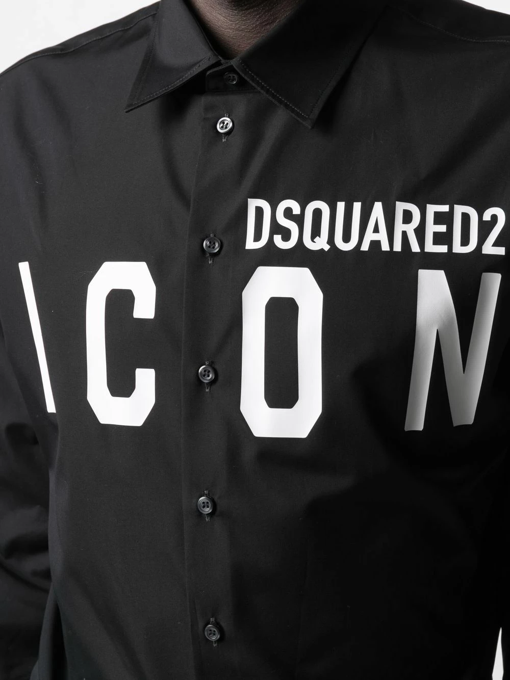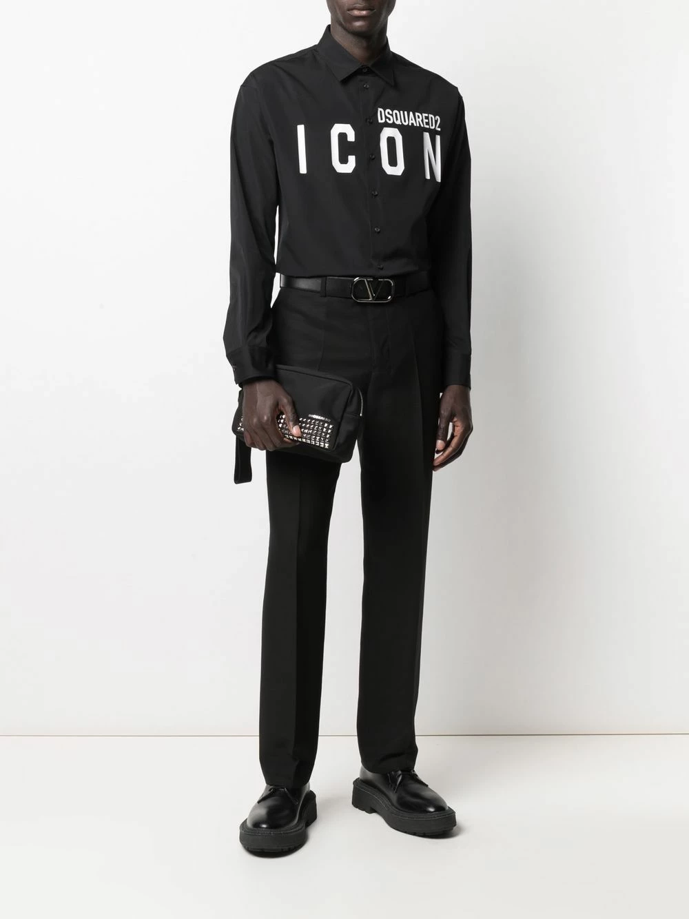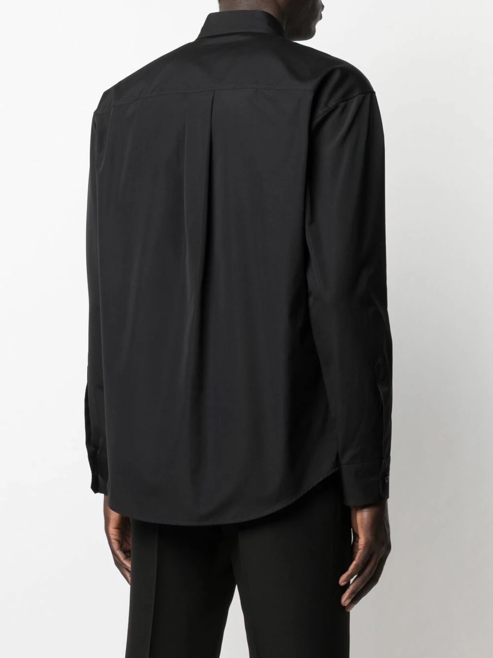 Détail de plis creux, logo imprimé sur le devant, slogan imprimé sur l’avant, col classique, boutonnière sur le devant, manches longues, poignets boutonnés, ourlet droit. Matière : coton.