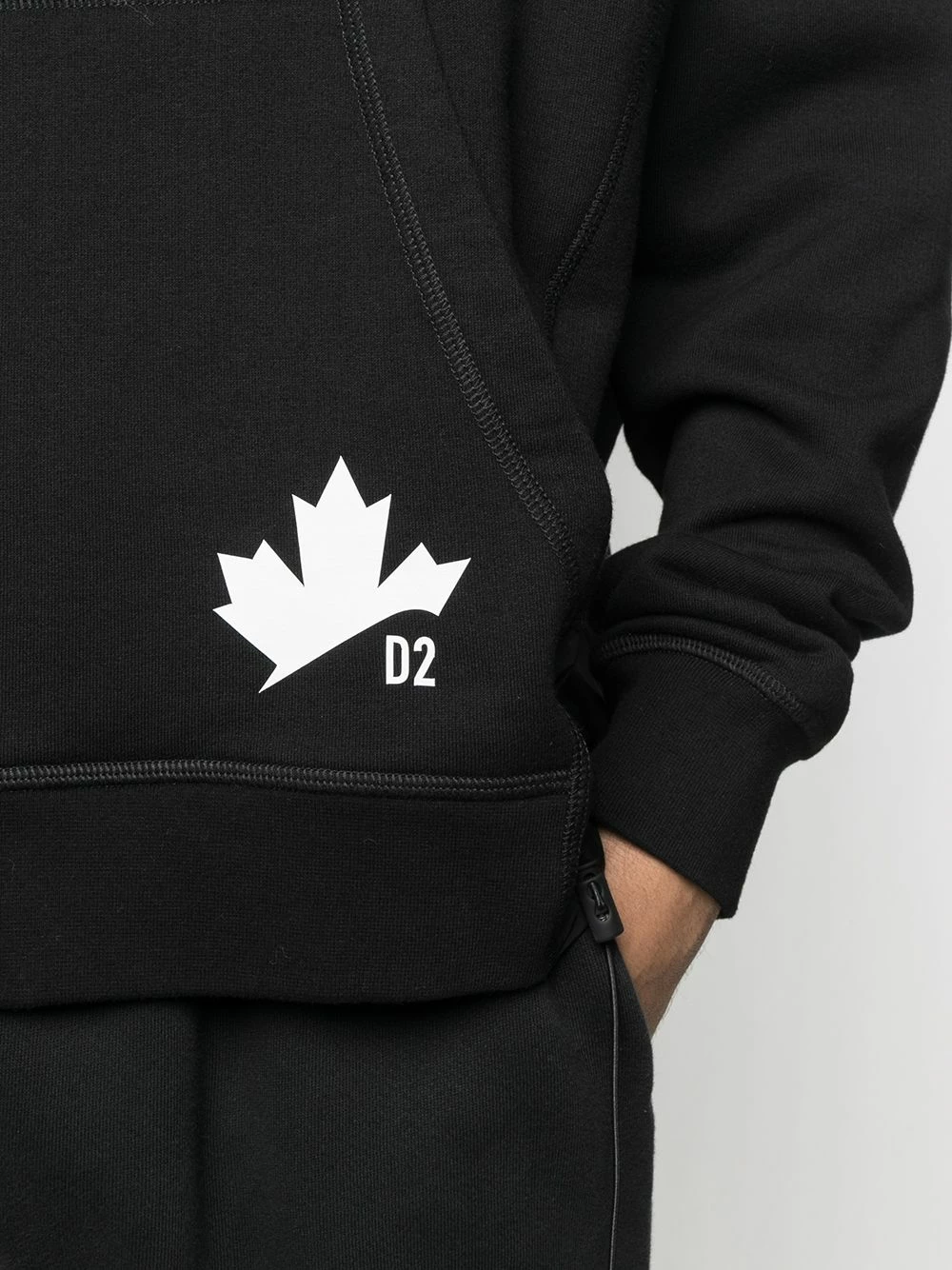 Logo imprimé et orné, capuche à lien de resserrage, effet d’épaules descendues, manches longues, poche plaquée sur le devant. Couleur : noir. Matière : coton.