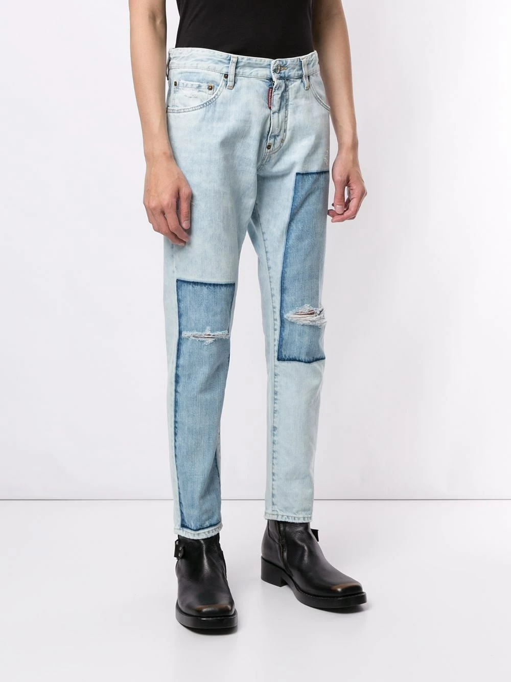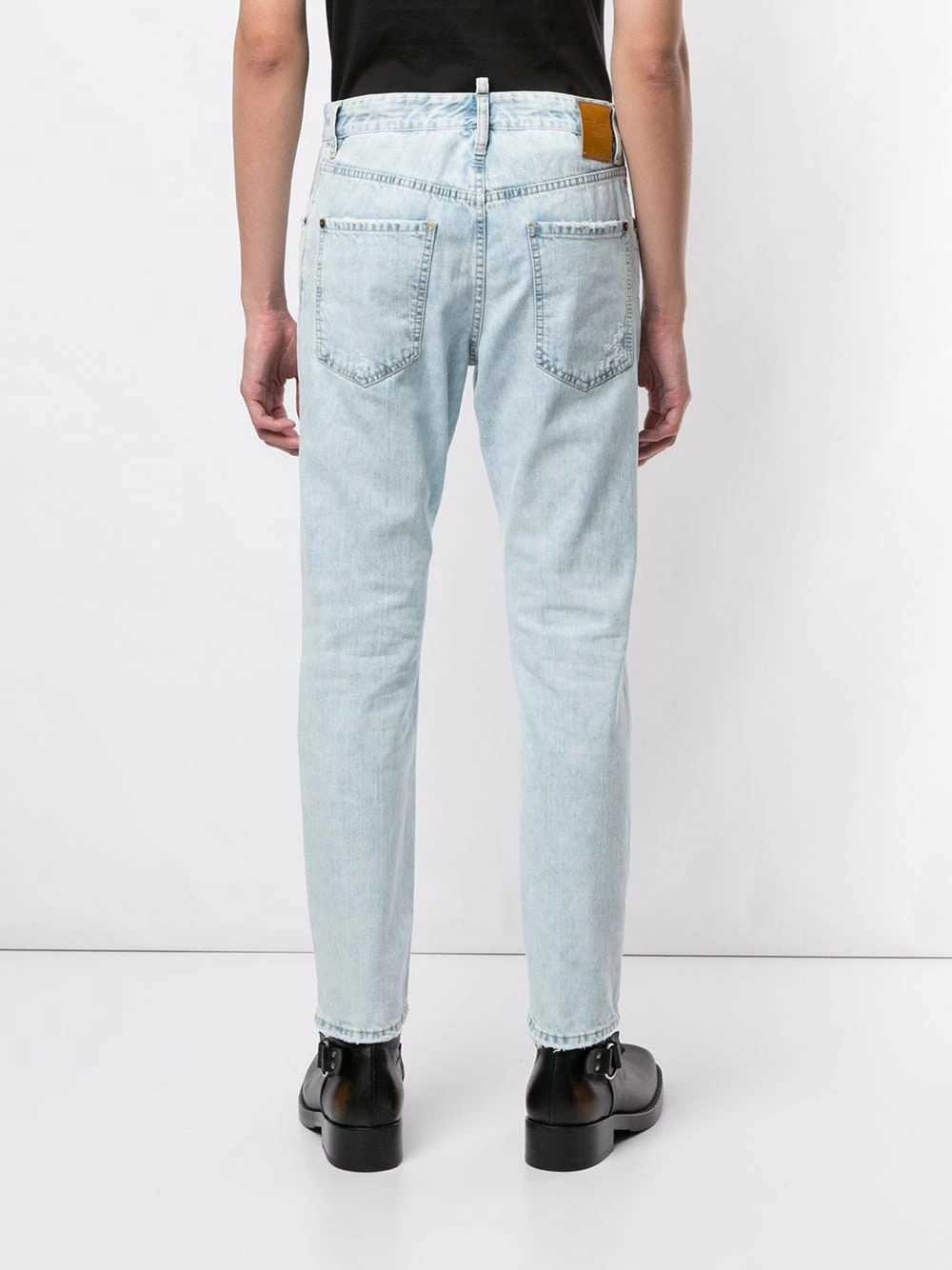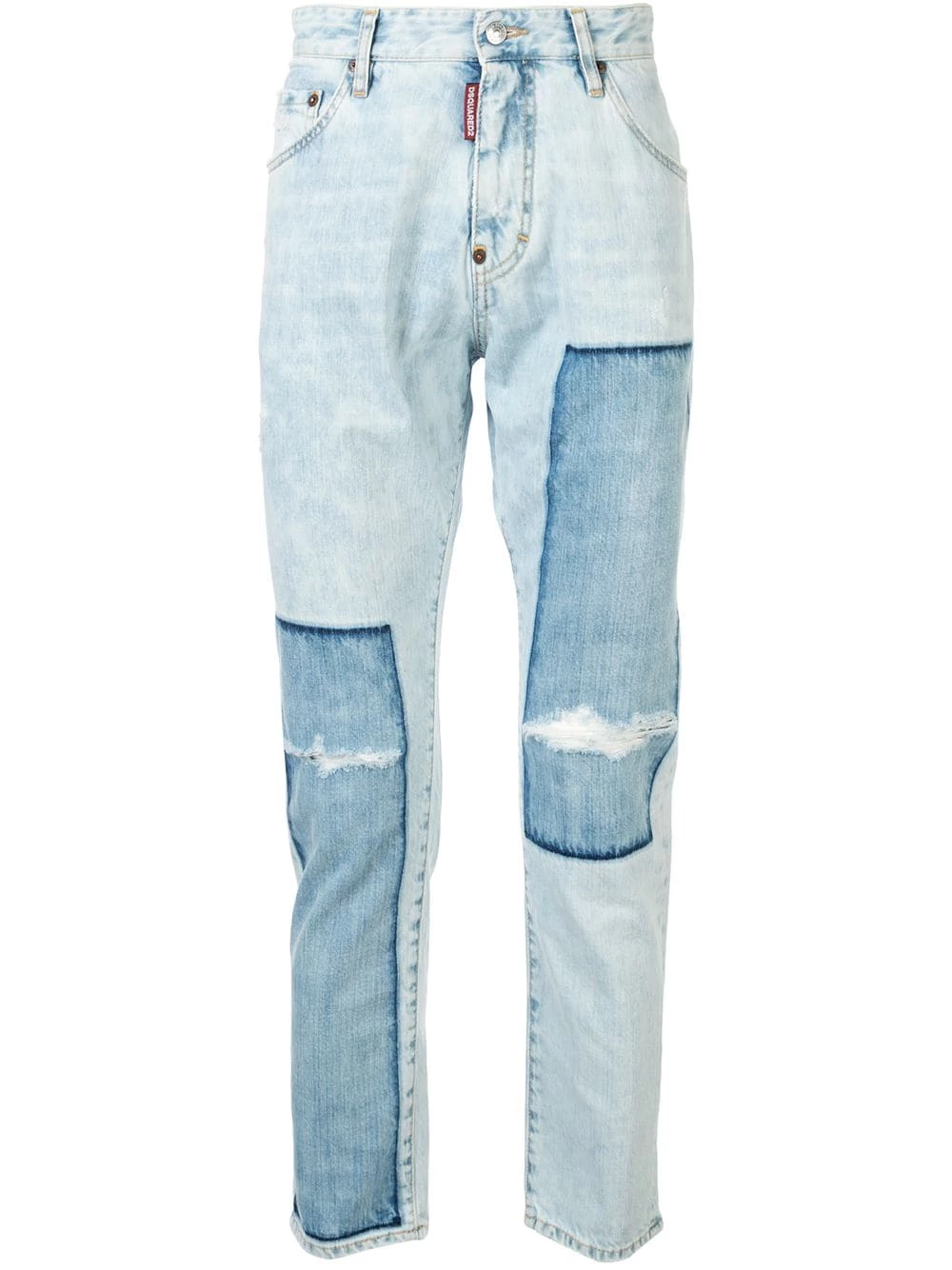 Jean droit classique en coton Dsquared2 avec taille haute, coupe droite, longueur classique et effet délavé usé. Couleur : bleu.