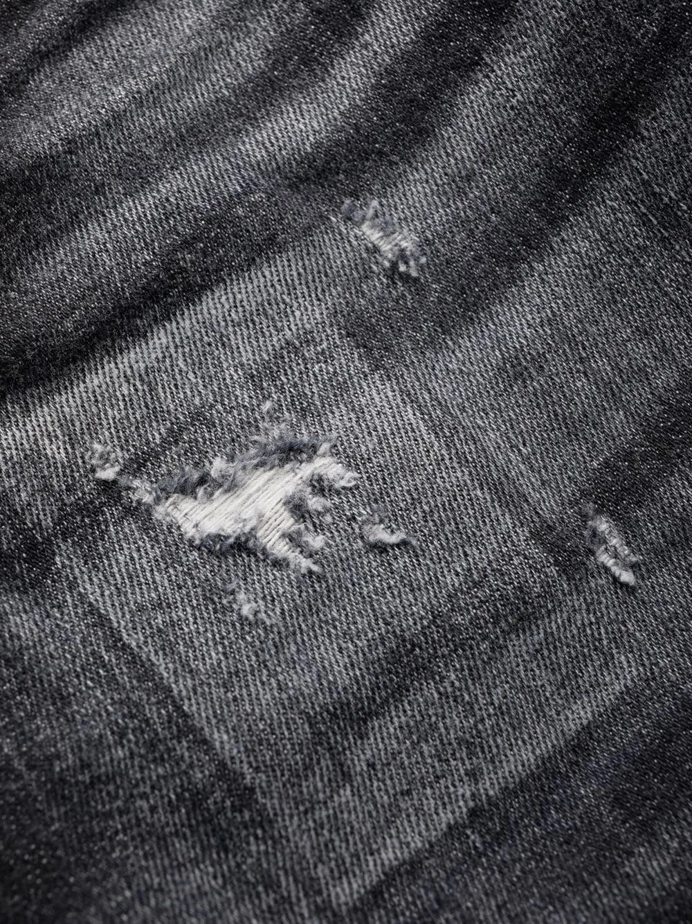 Effet usé, finitions à effet usé, patch logo sur l’arrière, passants de ceinture, fermeture à zip et boutons sur le devant, cinq poches classiques, construction stretch. Couleur : noir.