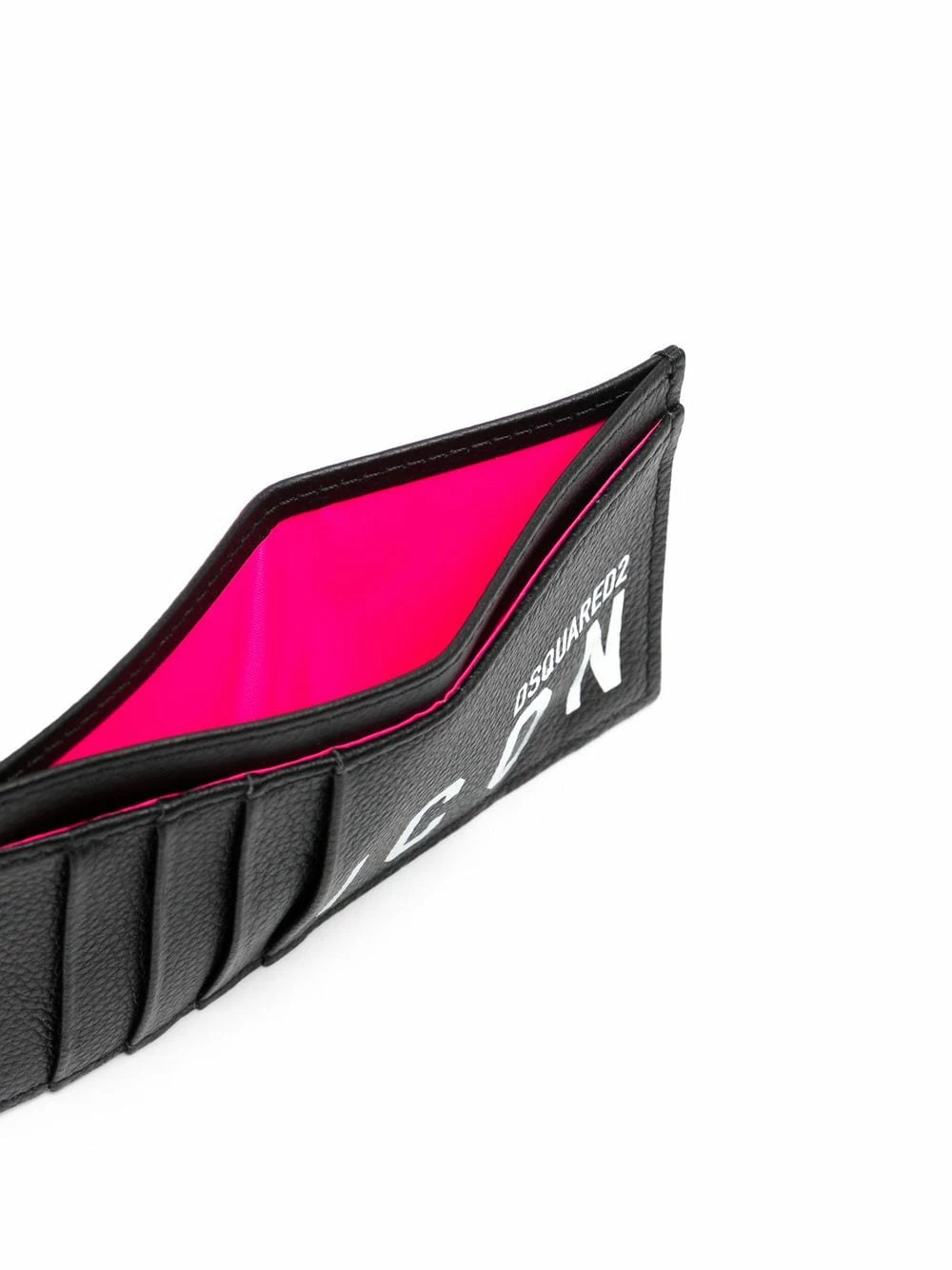 Logo imprimé sur le devant, fentes pour carte, coutures ton sur ton, compartiment à billets, texture grainée. Matière : cuir.