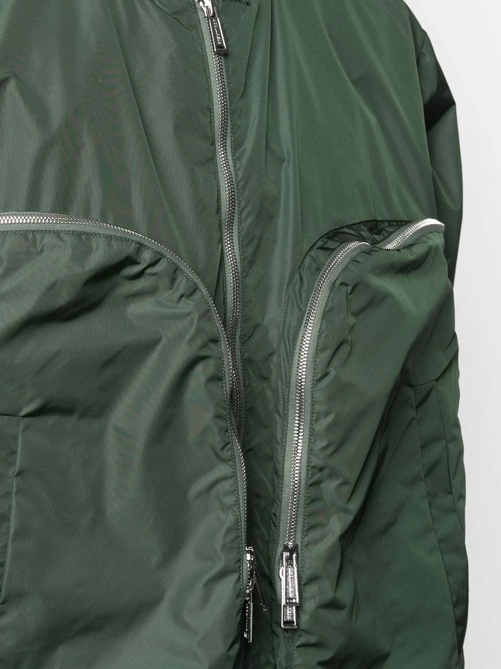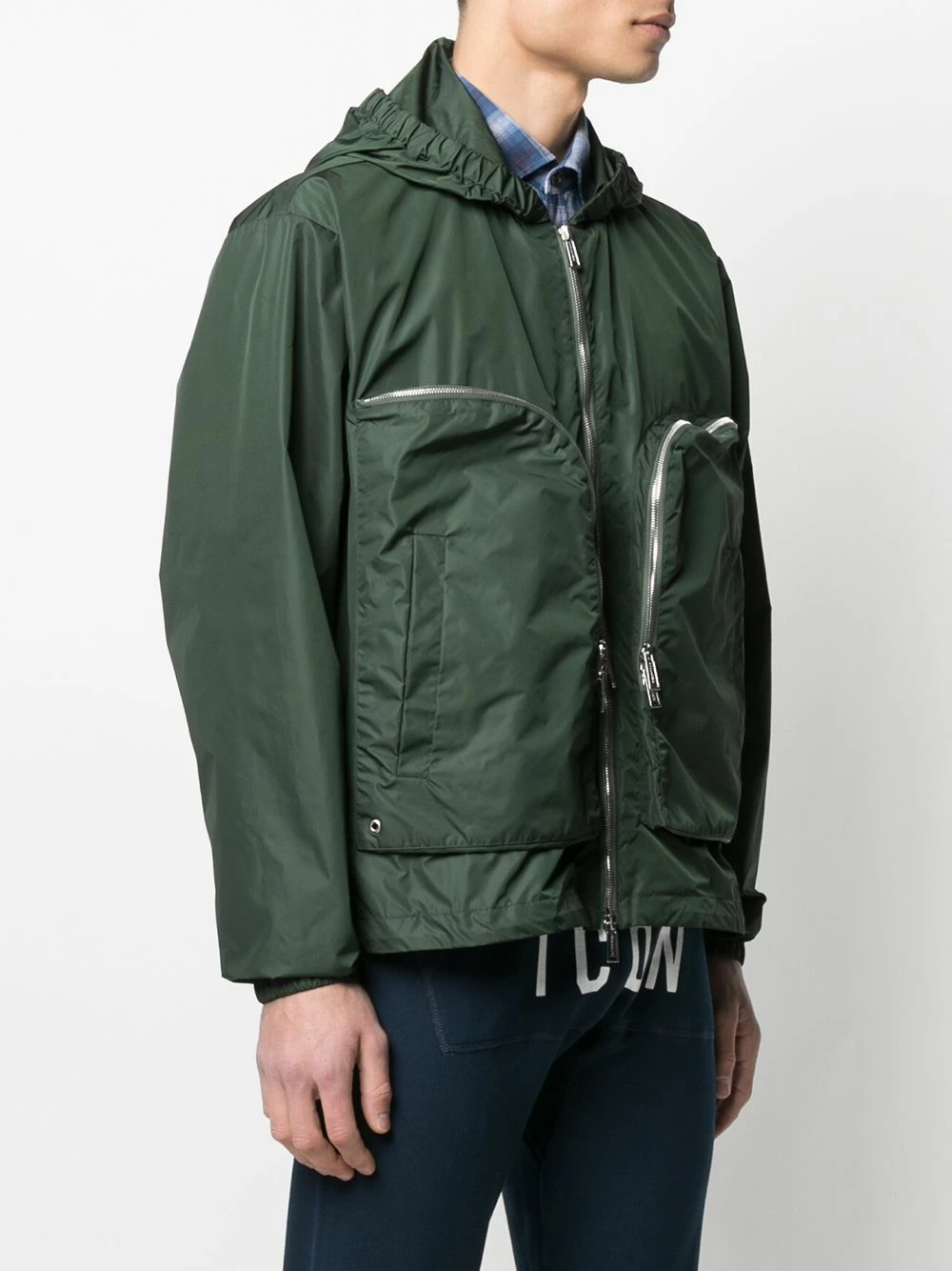 Capuche classique, fermeture zippée à double sens sur le devant, ornements argentés, poches à fermeture zippée devant, effet d’épaules descendues, manches longues, poignets élastiqués, ourlet incurvé, deux poches latérales passepoilées. Couleur : vert.