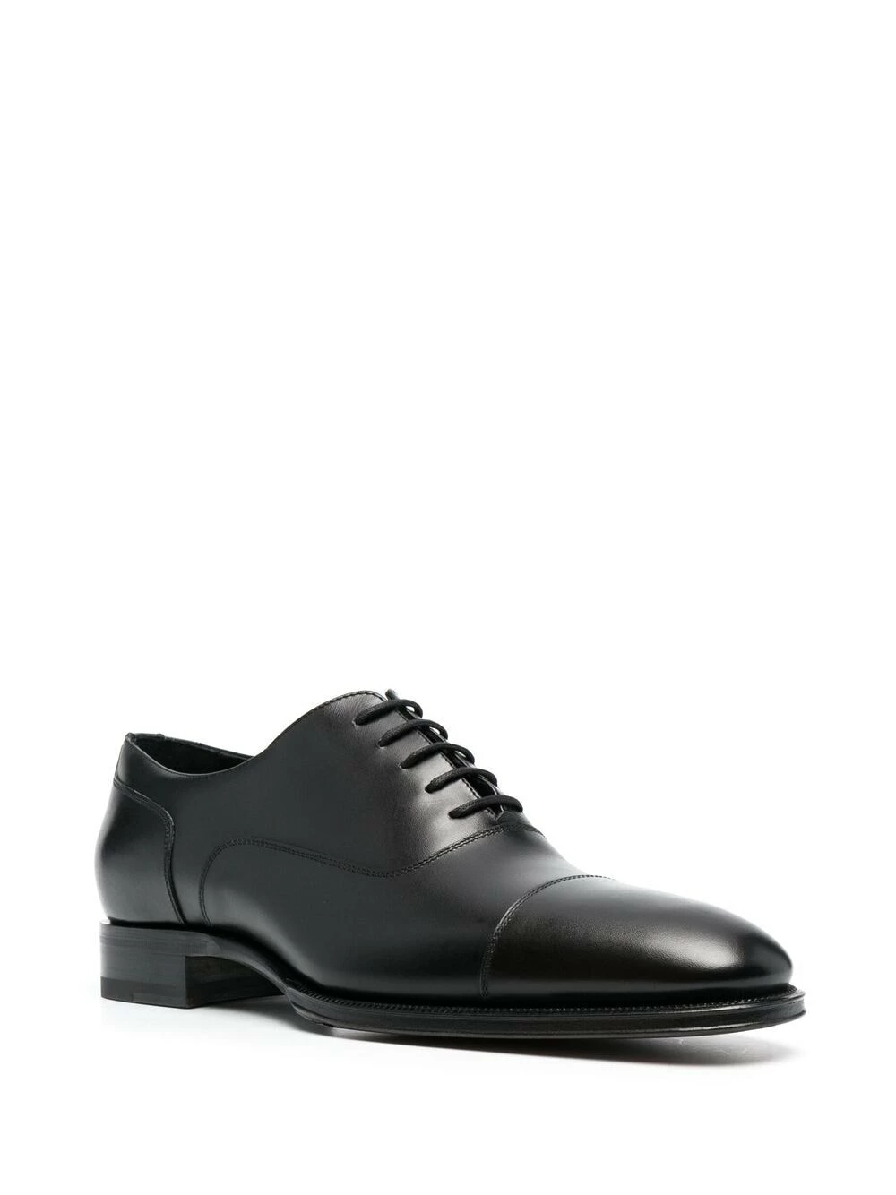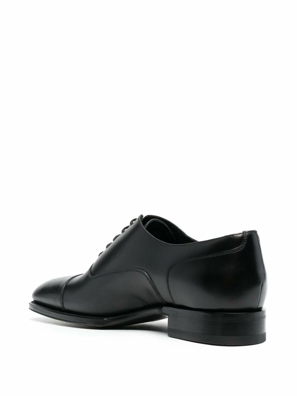 Semelle intérieure à logo, bout en amande, fermeture à lacer sur le devant, petit talon épais. Couleur : noir. Matière : cuir.