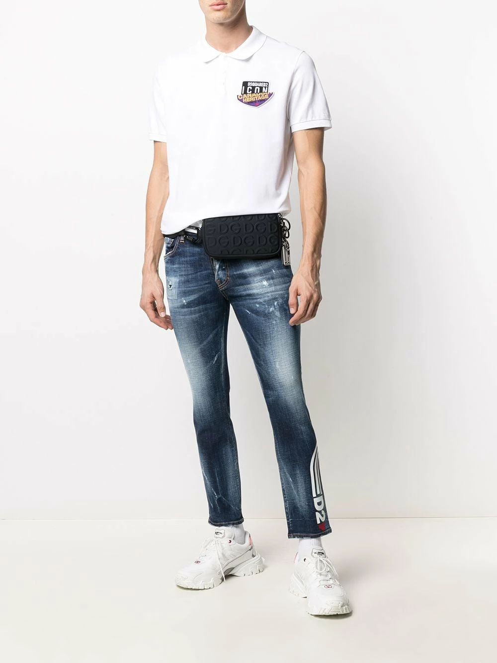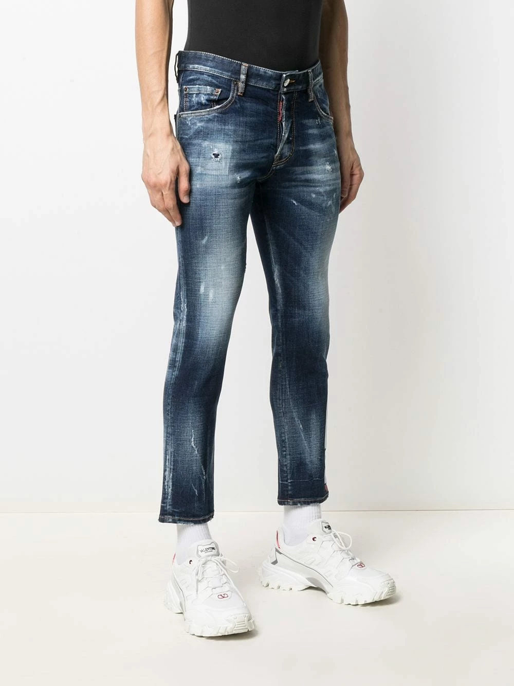 Logo imprimé sur le côté, taille basse, passants de ceinture, boutonnière sur le devant, 5 poches classiques, coupe courte. Couleur : bleu. Matière : coton.