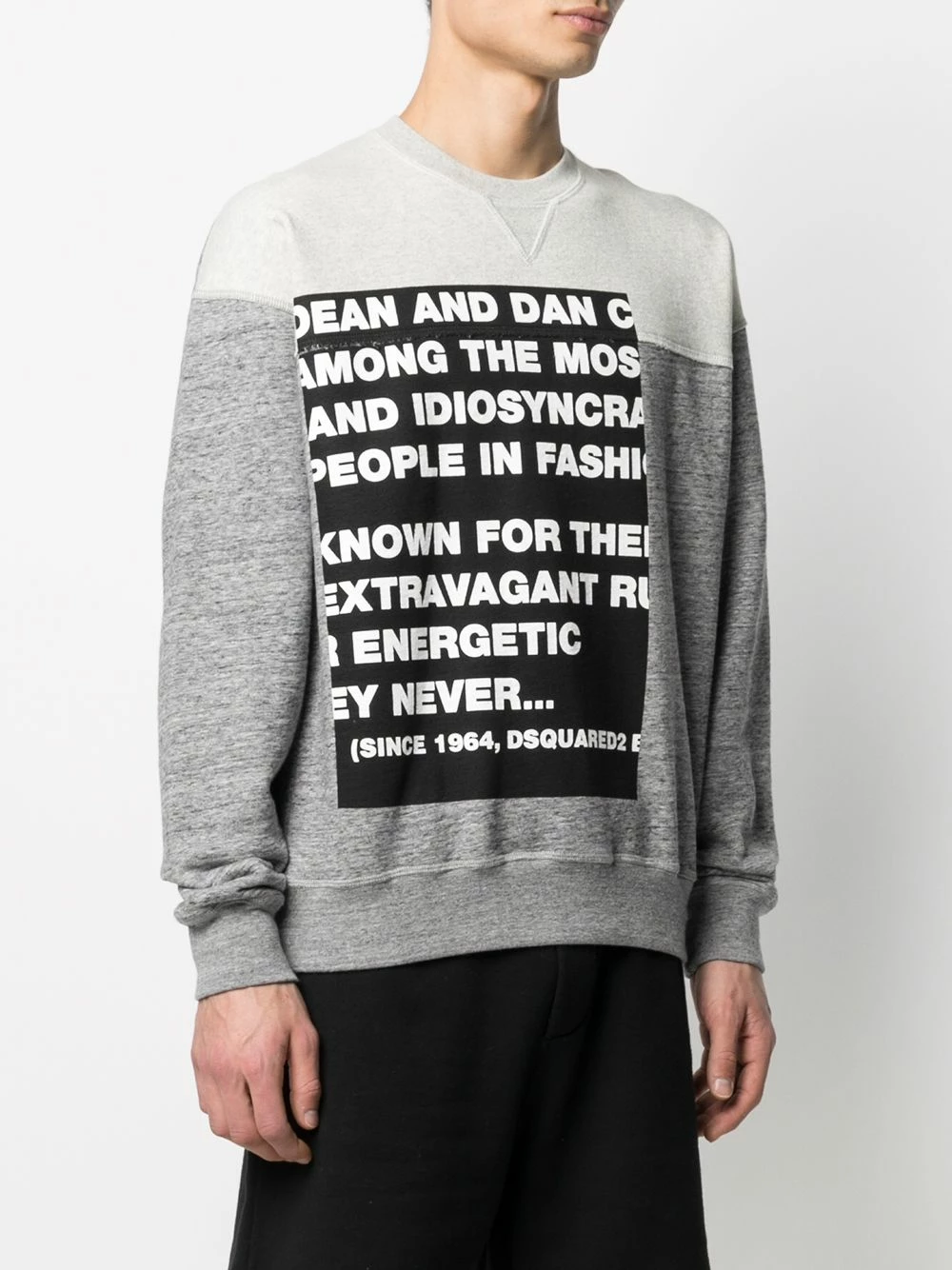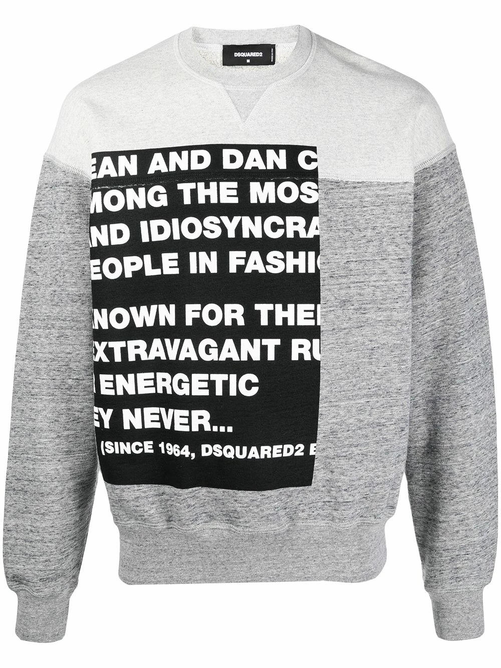 Effet chiné, slogan imprimé sur l’avant, encolure ras du cou, poignets élastiqués, ceinture élastique. Couleur : Gris.