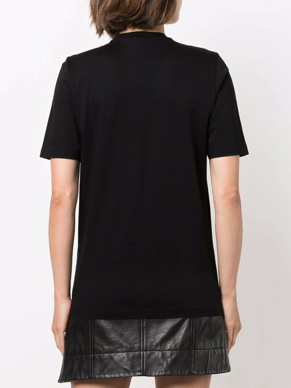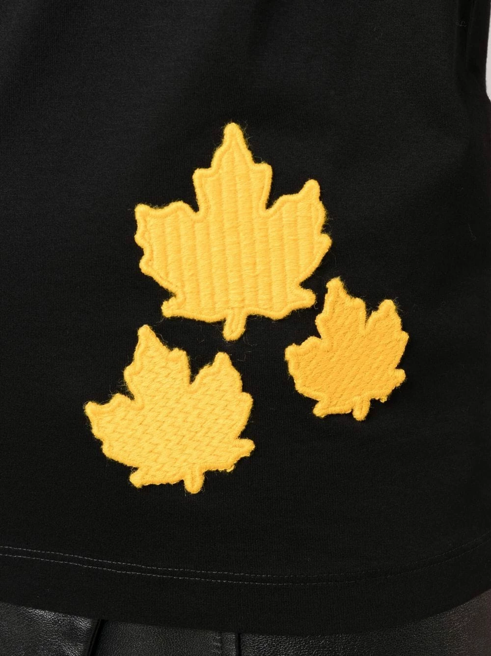 Logo brodé sur la poitrine, imprimé feuillage, encolure ras du cou, manches courtes, ourlet droit. Couleur : noir. Matière : coton.