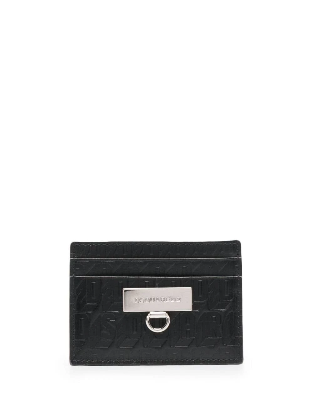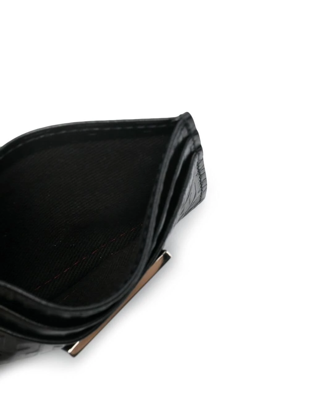 Motif monogrammé embossé, plaque logo argentée, fentes pour carte. Couleur : noir. Matière : cuir de veau.
