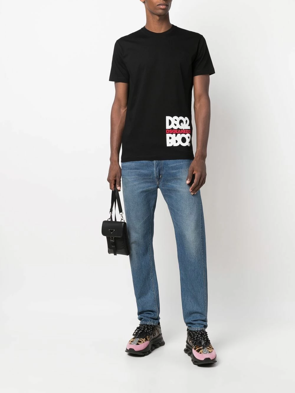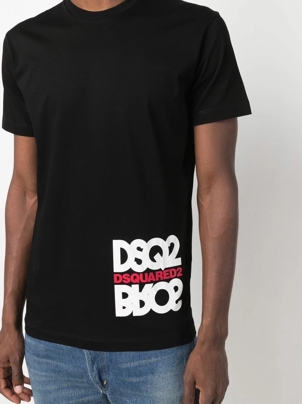 Noir, coton, logo imprimé sur le côté, encolure ronde, manches courtes, ourlet droit.