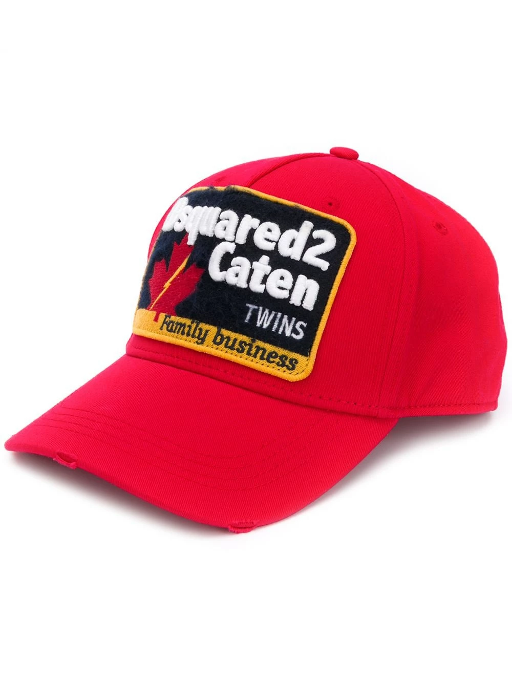 Casquette à logo brodé en coton Dsquared2 avec visière incurvée, design à œillets, taille ajustable, détails brodés et effet délavé usé. Couleur : rouge.
