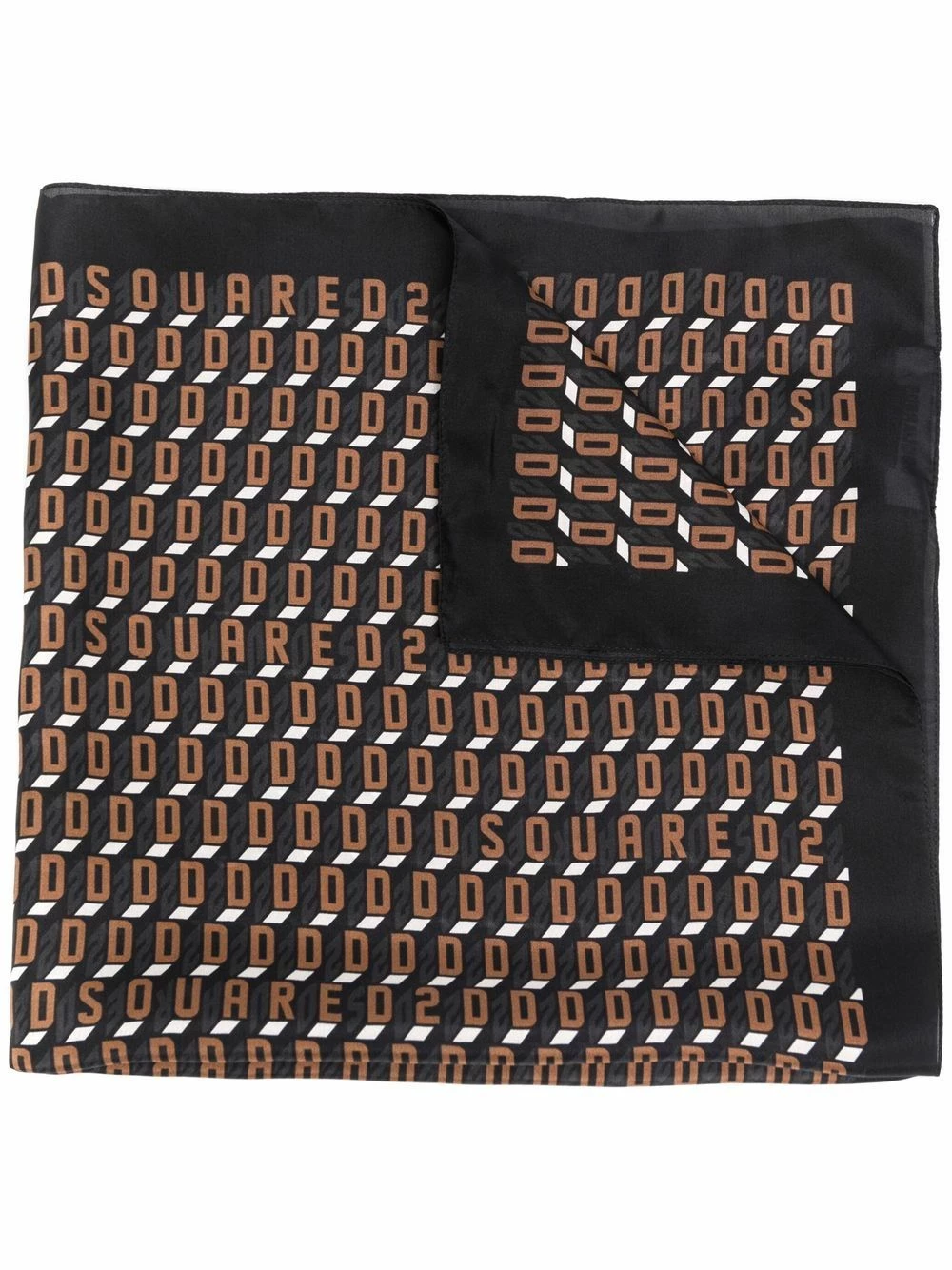 Imprimé monogrammé, bordures à coutures apparentes, structure légère. Matière : soie.