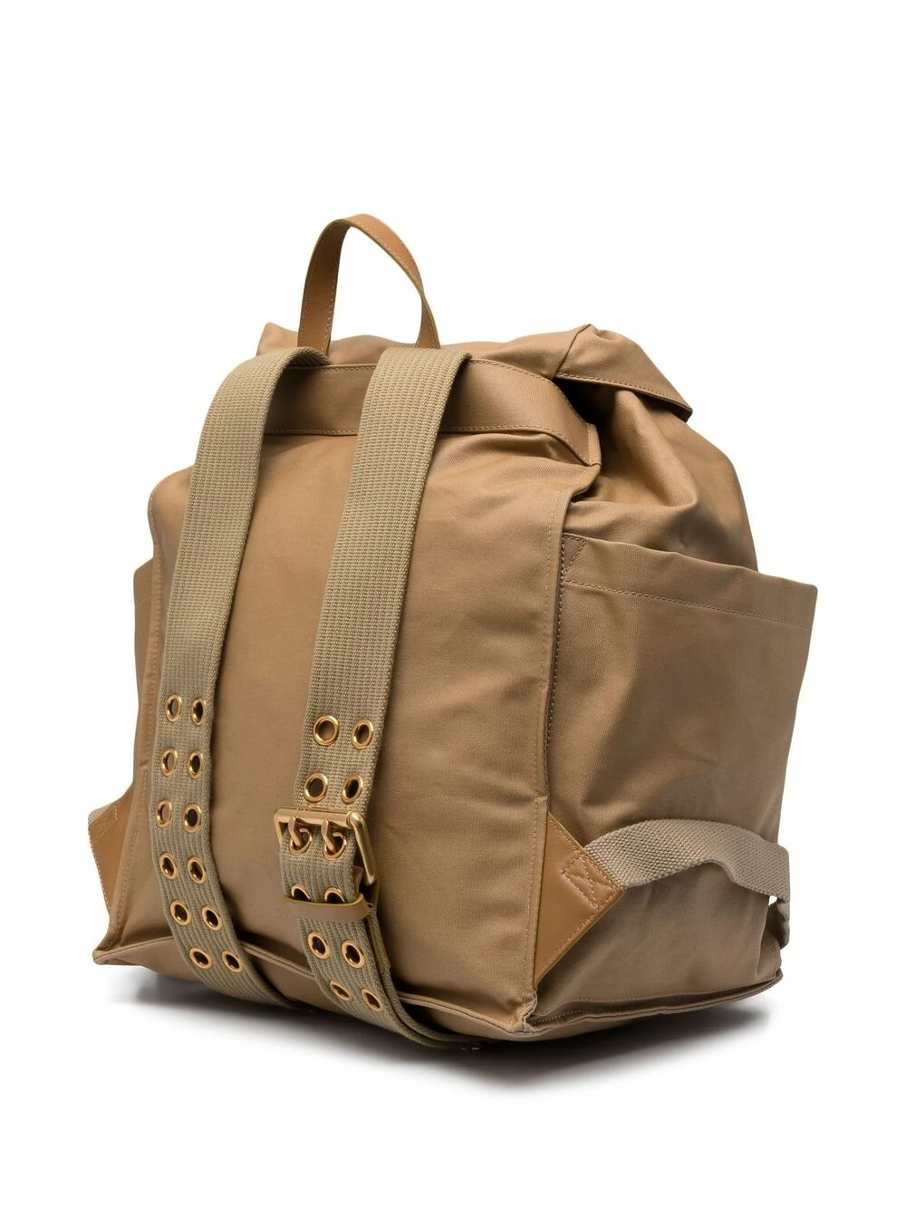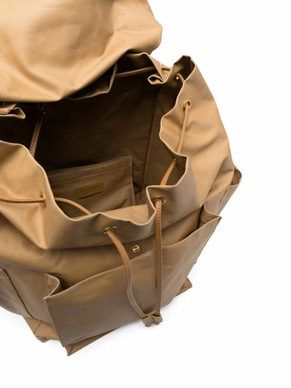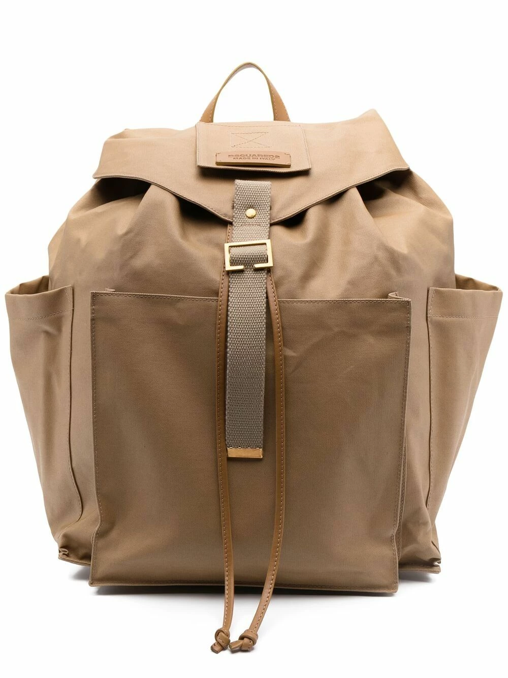 Patch logo sur le devant, rabat sur le dessus, fermeture à boucle sur le devant, lien de resserrage, poche intérieure zippée, poches plaquées multiples, deux brides porté épaule ajustables. Matière : toile.