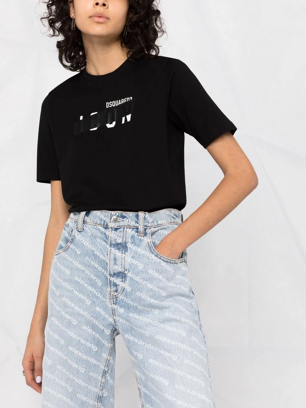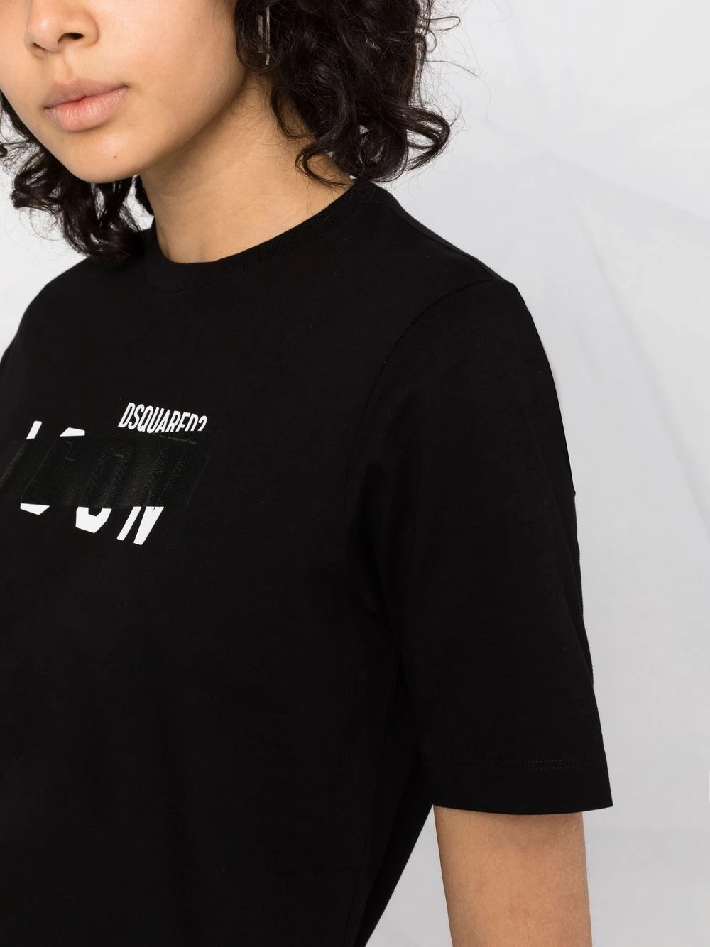 Encolure ras du cou, manches courtes, ourlet droit. Couleur : noir. Matière : coton.