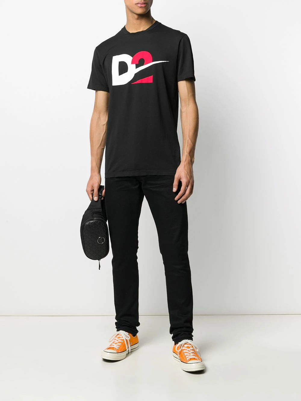 T-shirt D2 en coton Dsquared2 avec encolure ronde, manches courtes et ourlet droit. Couleur : noir.
