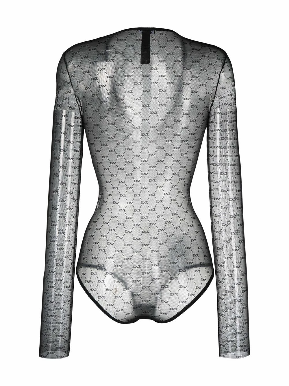 Effet de transparence, motif monogrammé brodé, col v, manches longues, construction stretch. Couleur : noir. N’oubliez pas : cet article doit être essayé par-dessus vos propres vêtements.