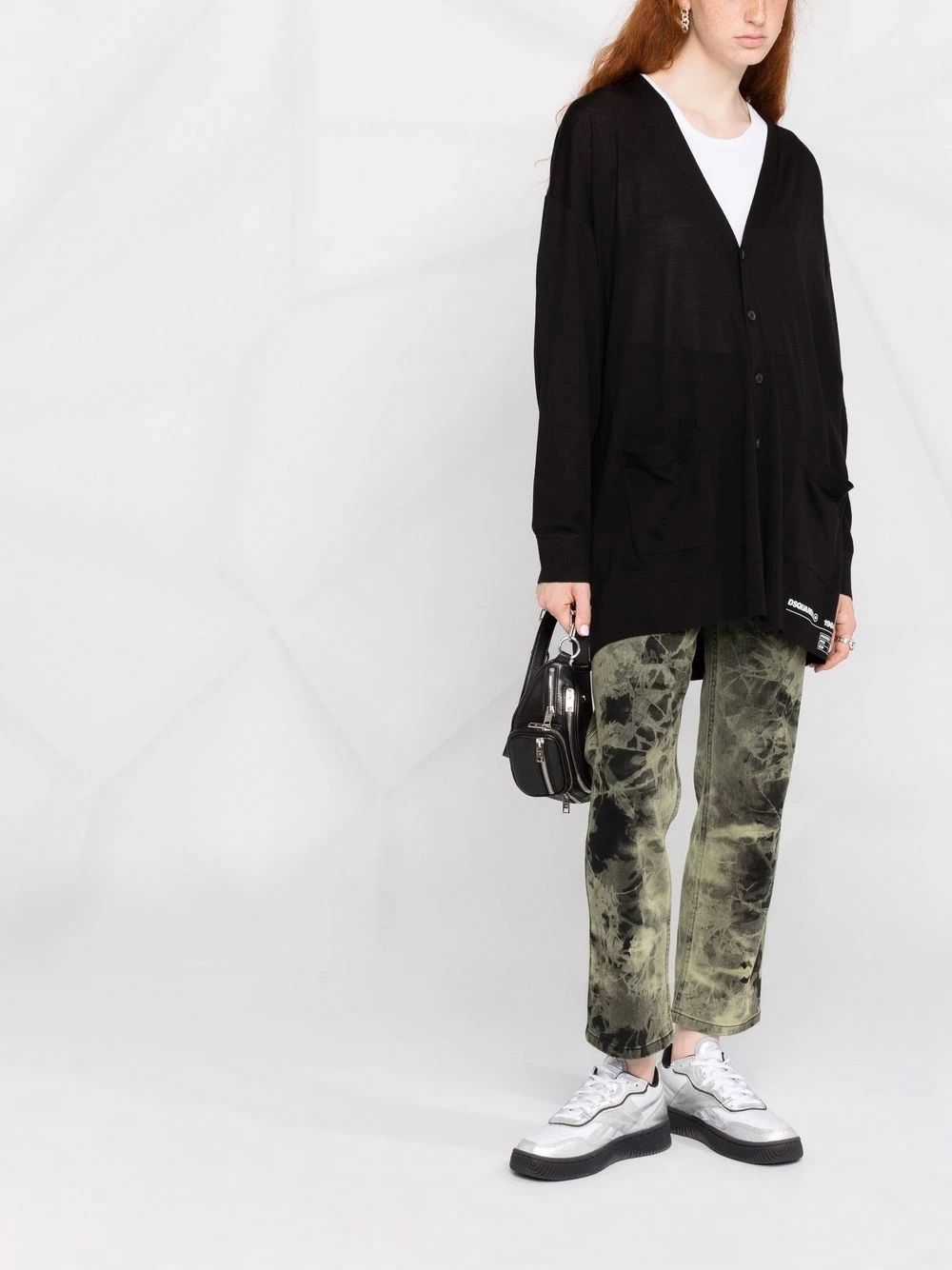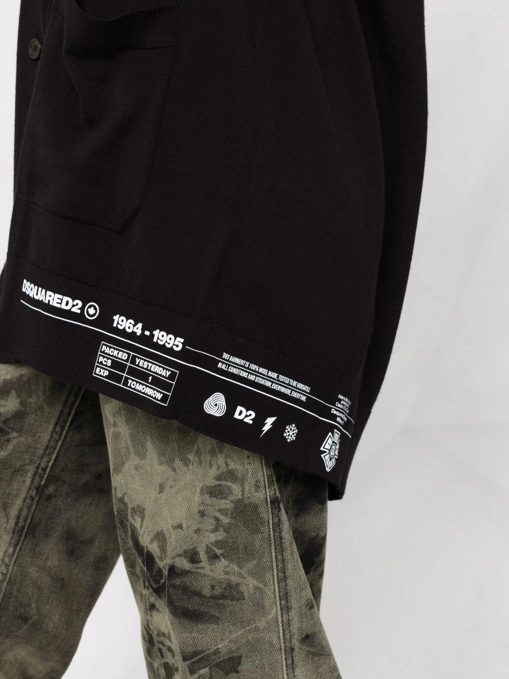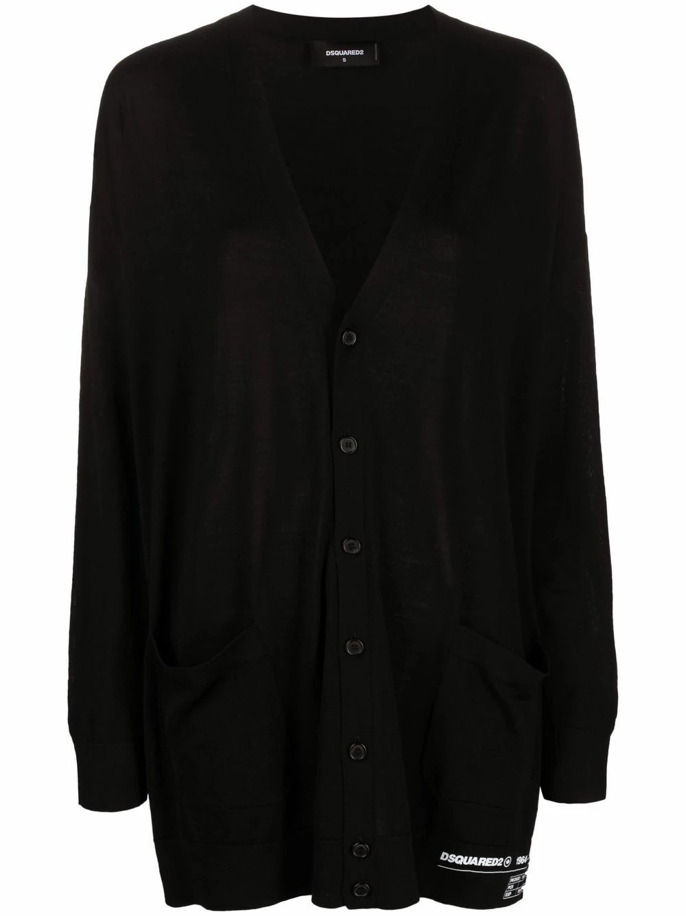 Maille fine, boutonnière sur le devant, logo imprimé à l’arrière, manches longues. Matière : laine.