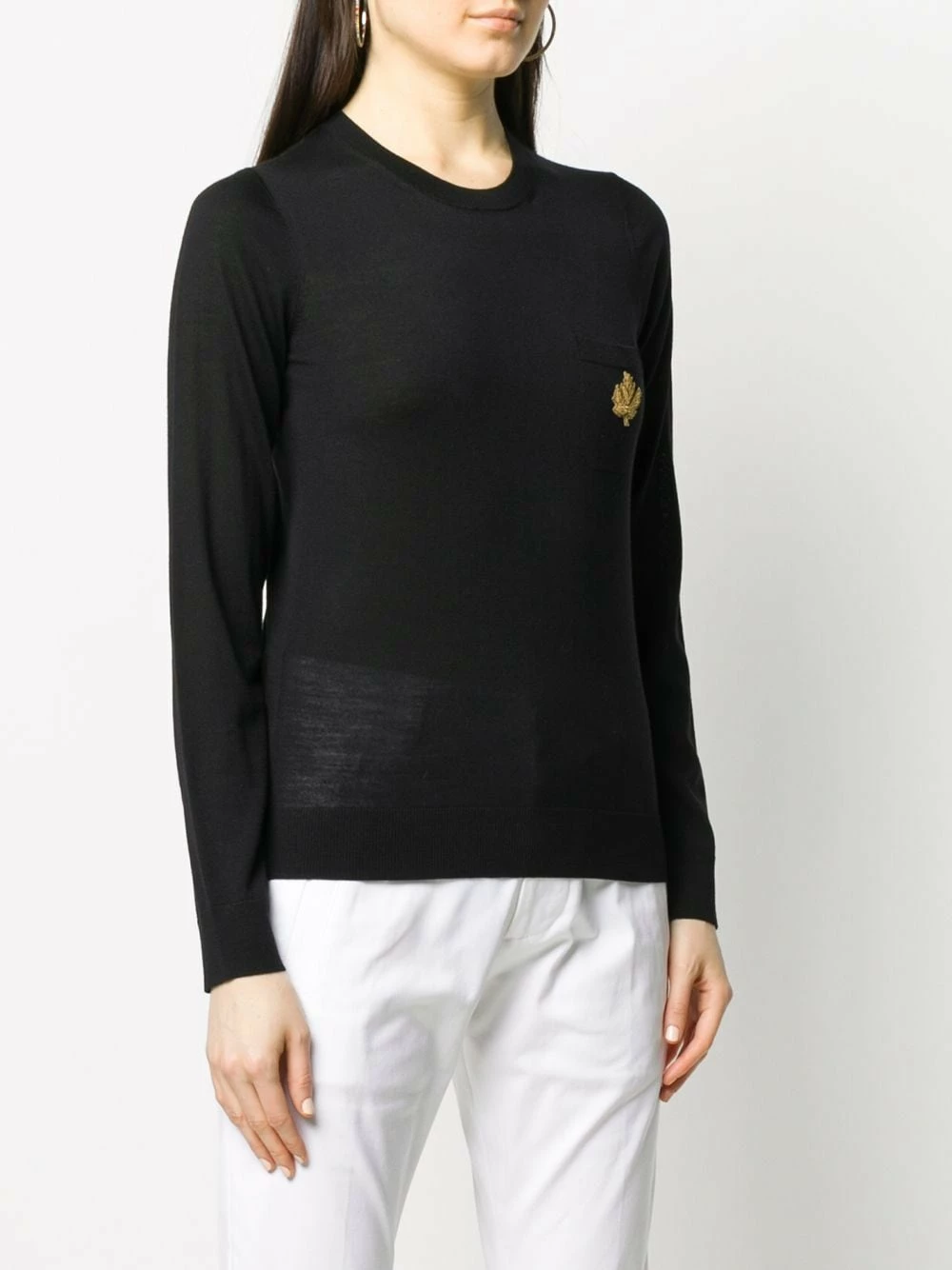 Pull à poche poitrine Dsquared2 avec encolure ronde nervurée, manches longues, poche poitrine plaquée et ourlet et poignets nervurés.