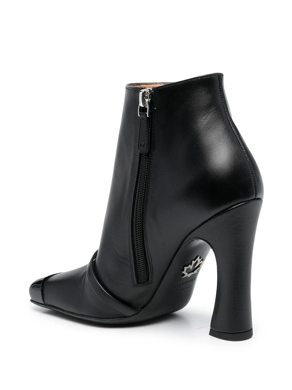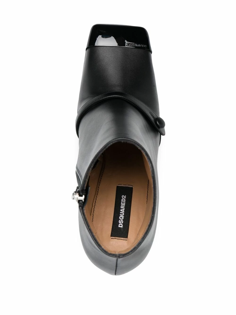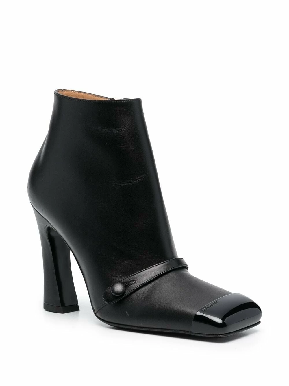 Détails de brides, bout carré, talon haut, doublure en cuir. Couleur : noir. Matière : cuir.