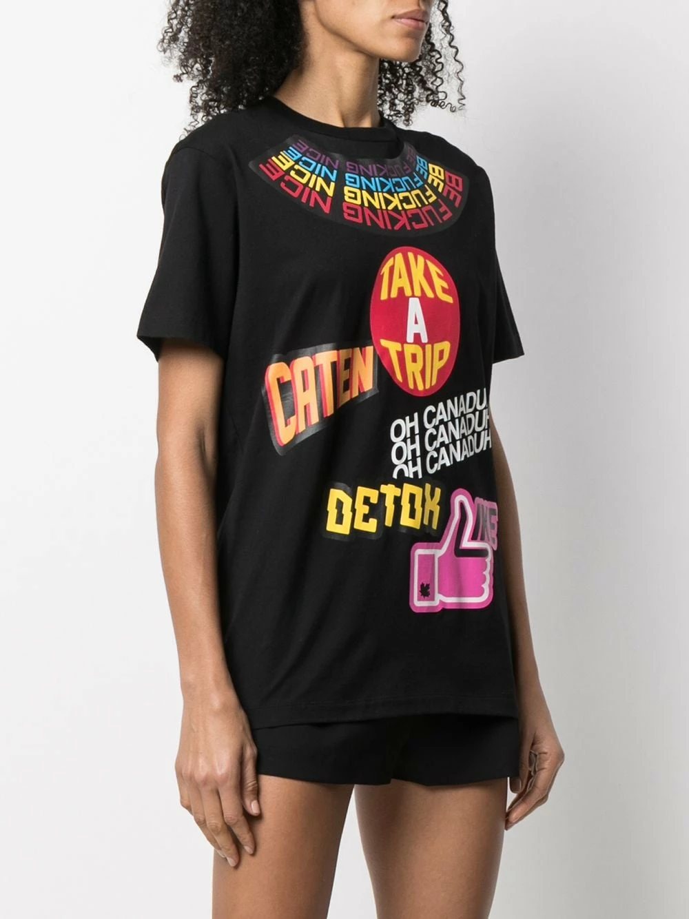 T-shirt à motif patchwork en coton DSQUARED2 avec imprimé patchwork, encolure ras du cou, manches courtes et ourlet droit. Couleur : noir.