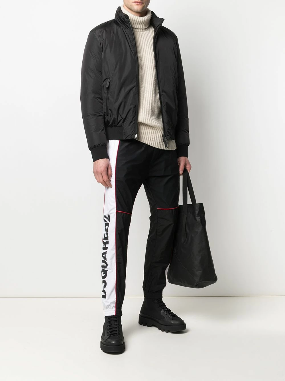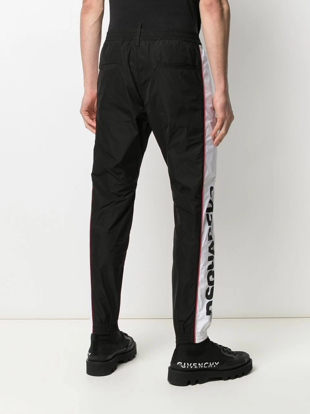 Taille haute, lien de resserrage, détail de rayure latérale, logo imprimé sur la cuisse, hauteur cheville. Couleur : Noir.