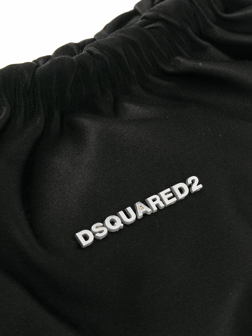Logo doré, détails de fronces, fermeture zippée sur le dessus, bride porté épaule en chaîne, poche intérieure plaquée, patch logo intérieur. Couleur : noir. Matière : soie.