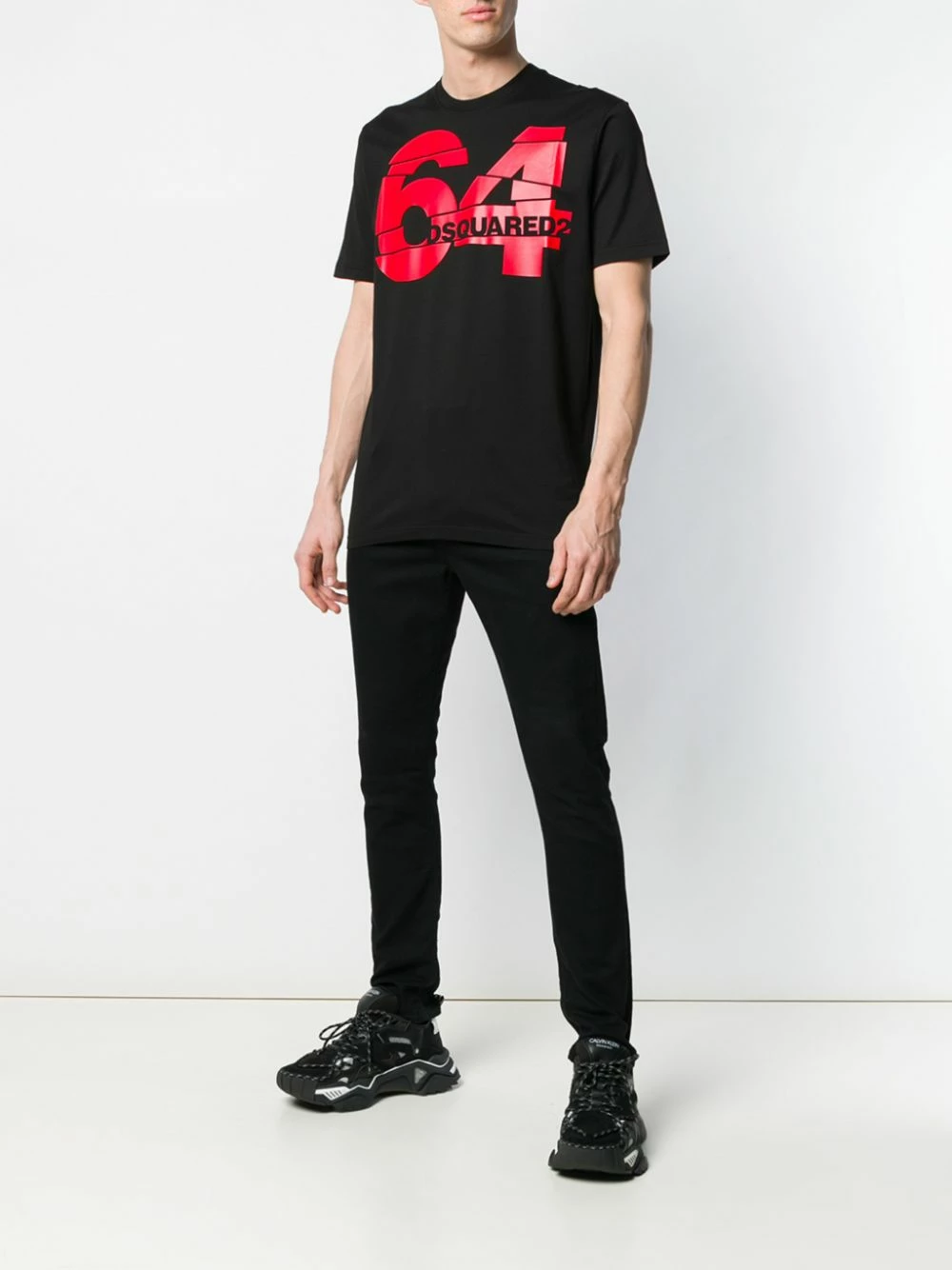 T-shirt 64 en coton Dsquared2 avec encolure ras du cou et manches courtes.